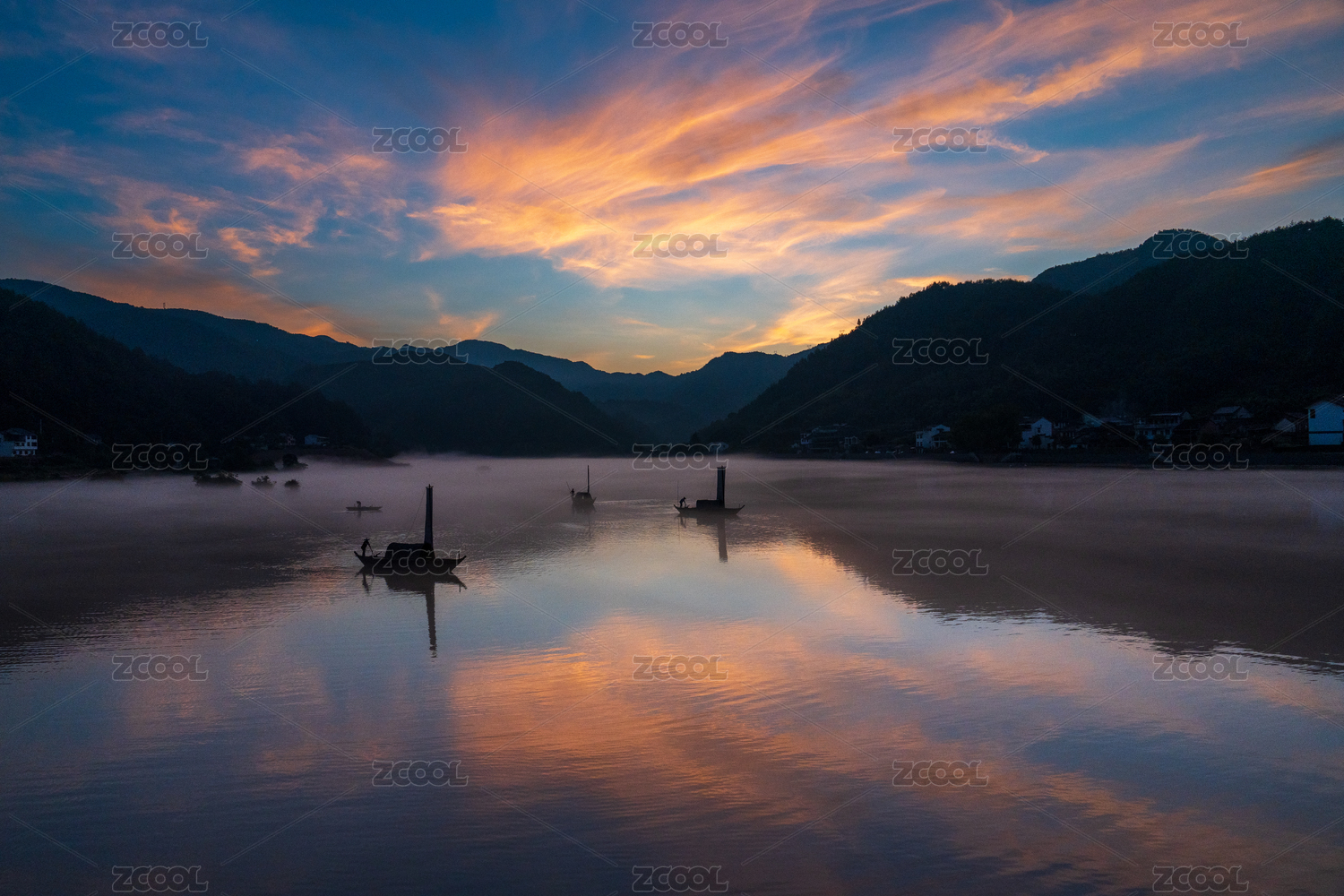 中國(guó)浙江省麗水市古堰畫鄉(xiāng)甌江日出