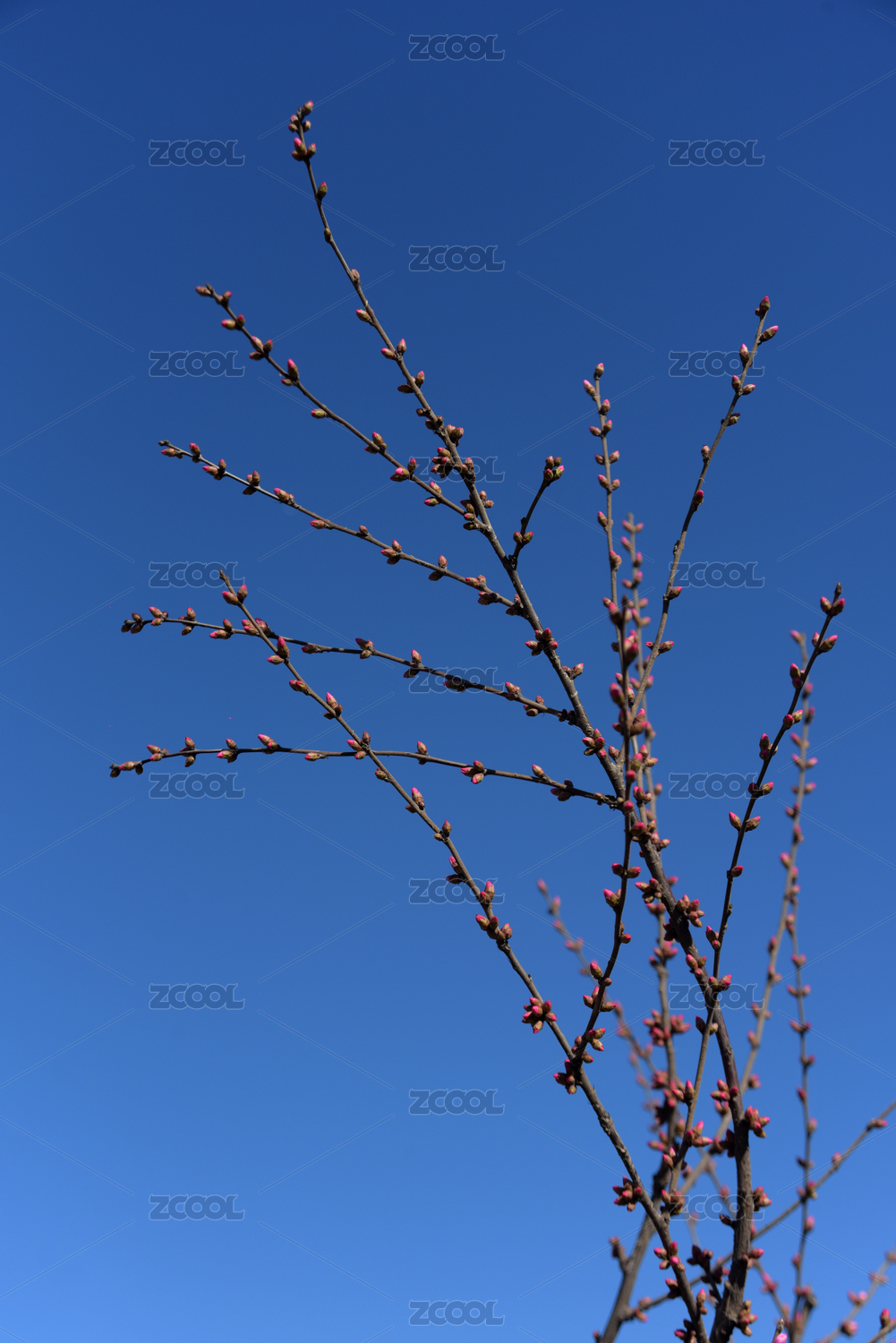 春天公園里含苞待放的榆葉梅花枝枝條豎構(gòu)圖