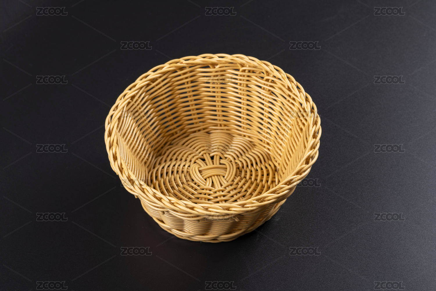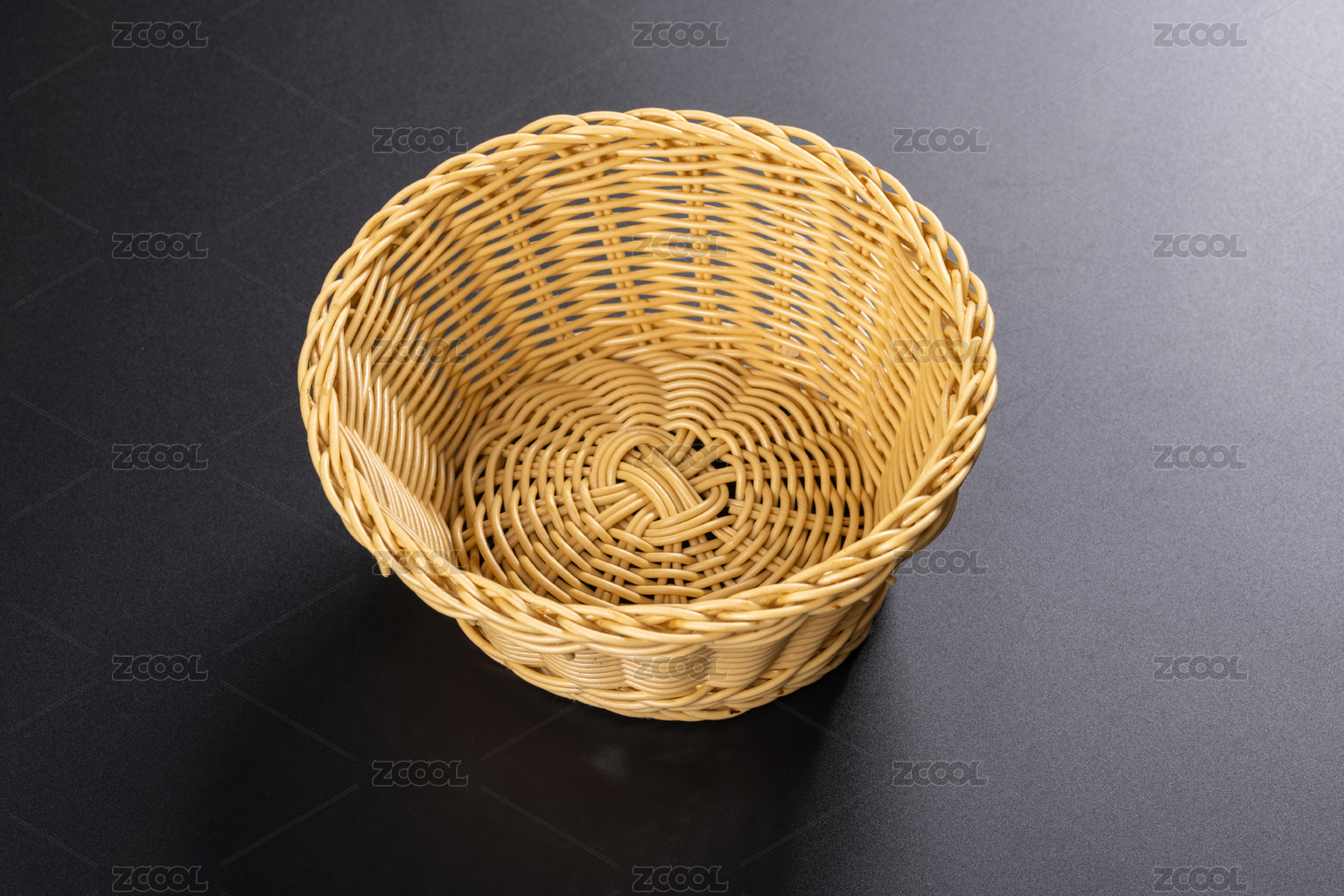 傳統(tǒng)柳條筐水果筐擺放在黑色桌面上