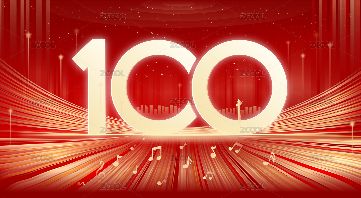 100周年慶典紅色海報設(shè)計