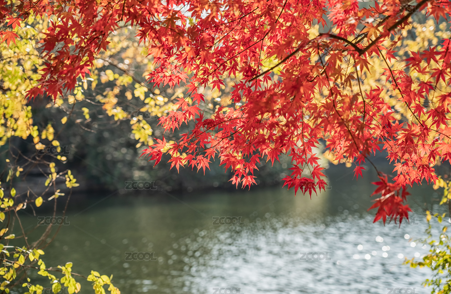 深秋的共青森林公園,日出的陽光灑向樹林