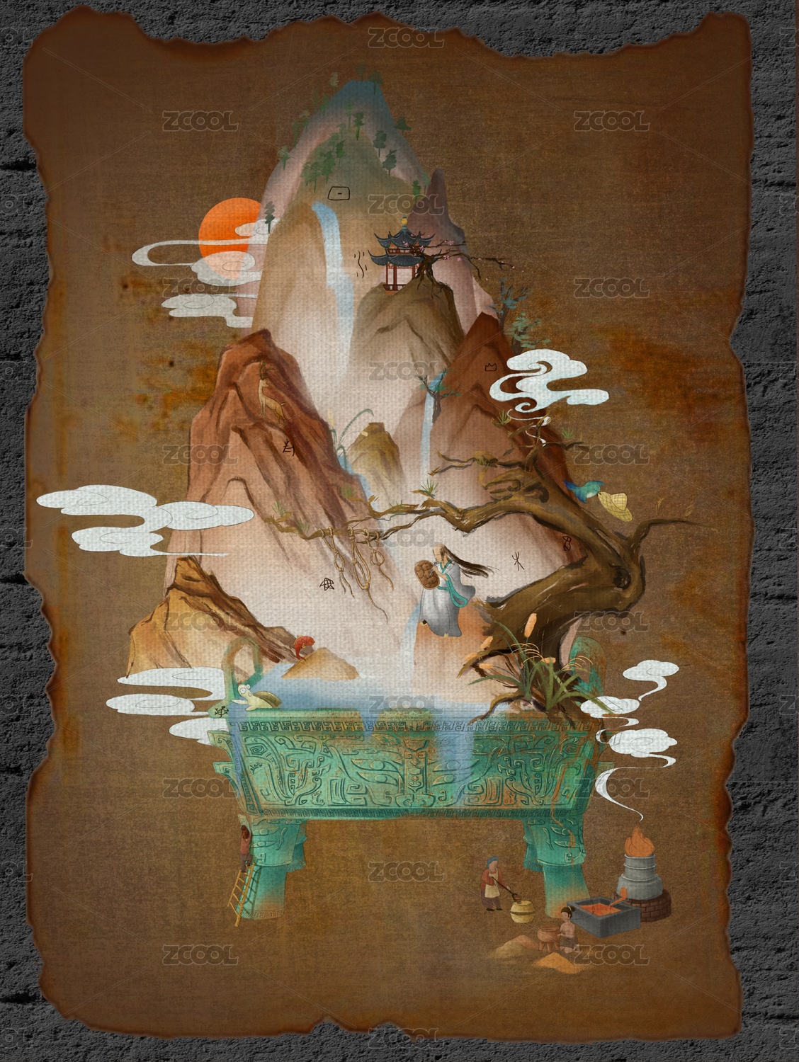 倉(cāng)頡造字山水人物青銅器陶器亭子牛皮紙解謎