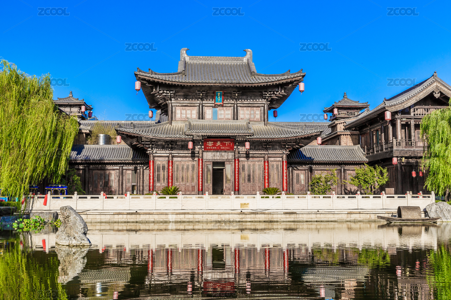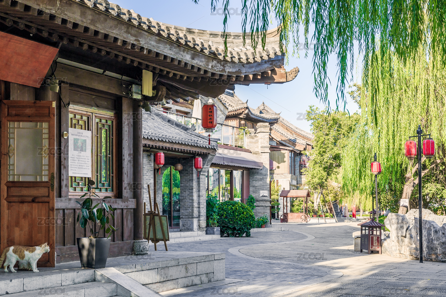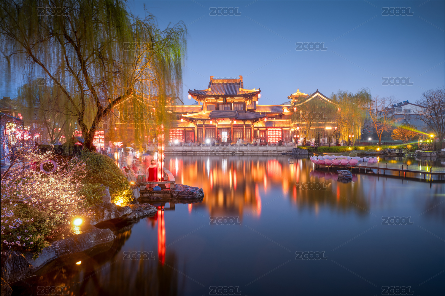 中國河南省洛陽市洛邑古城河畔復(fù)古建筑景觀