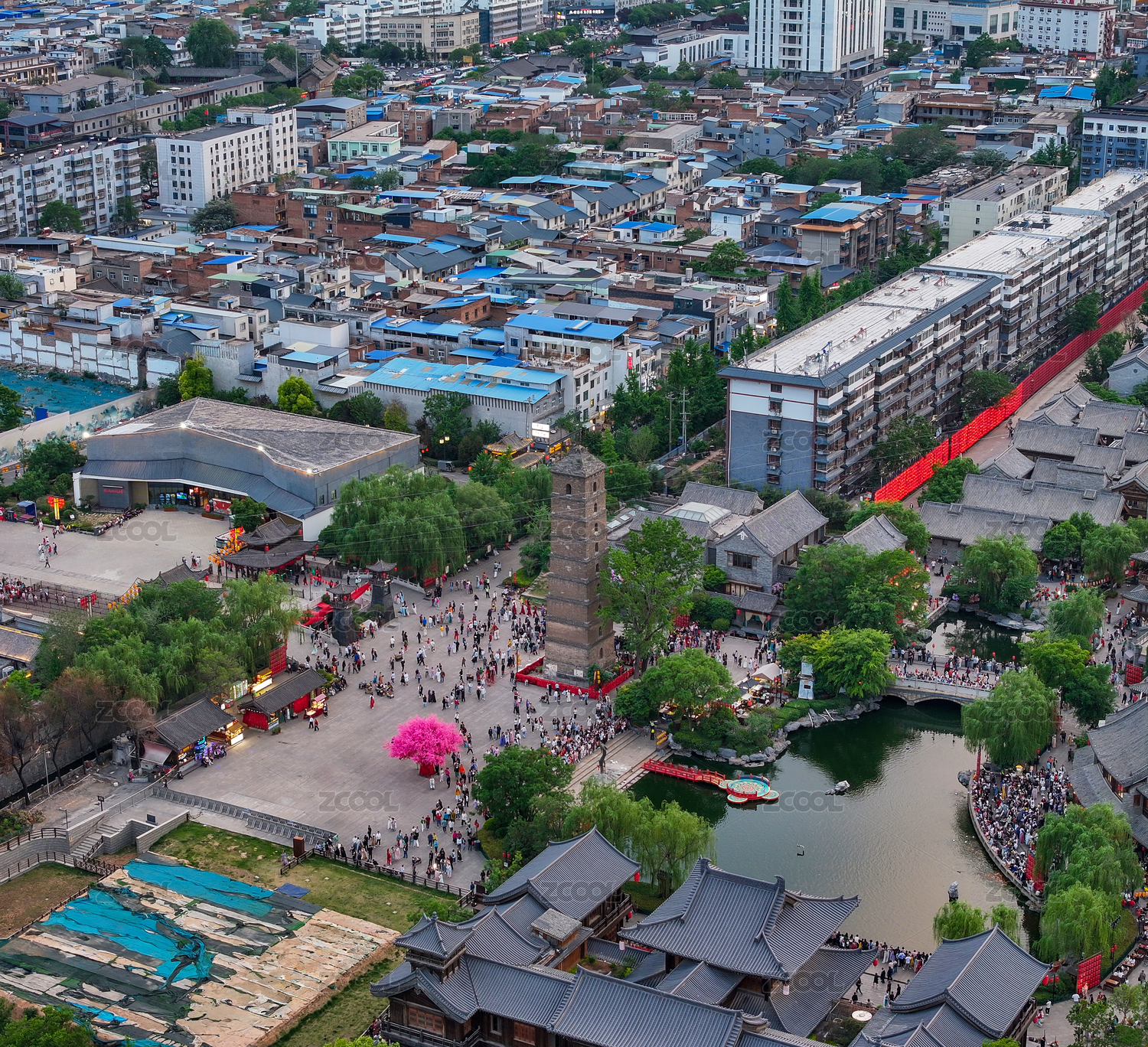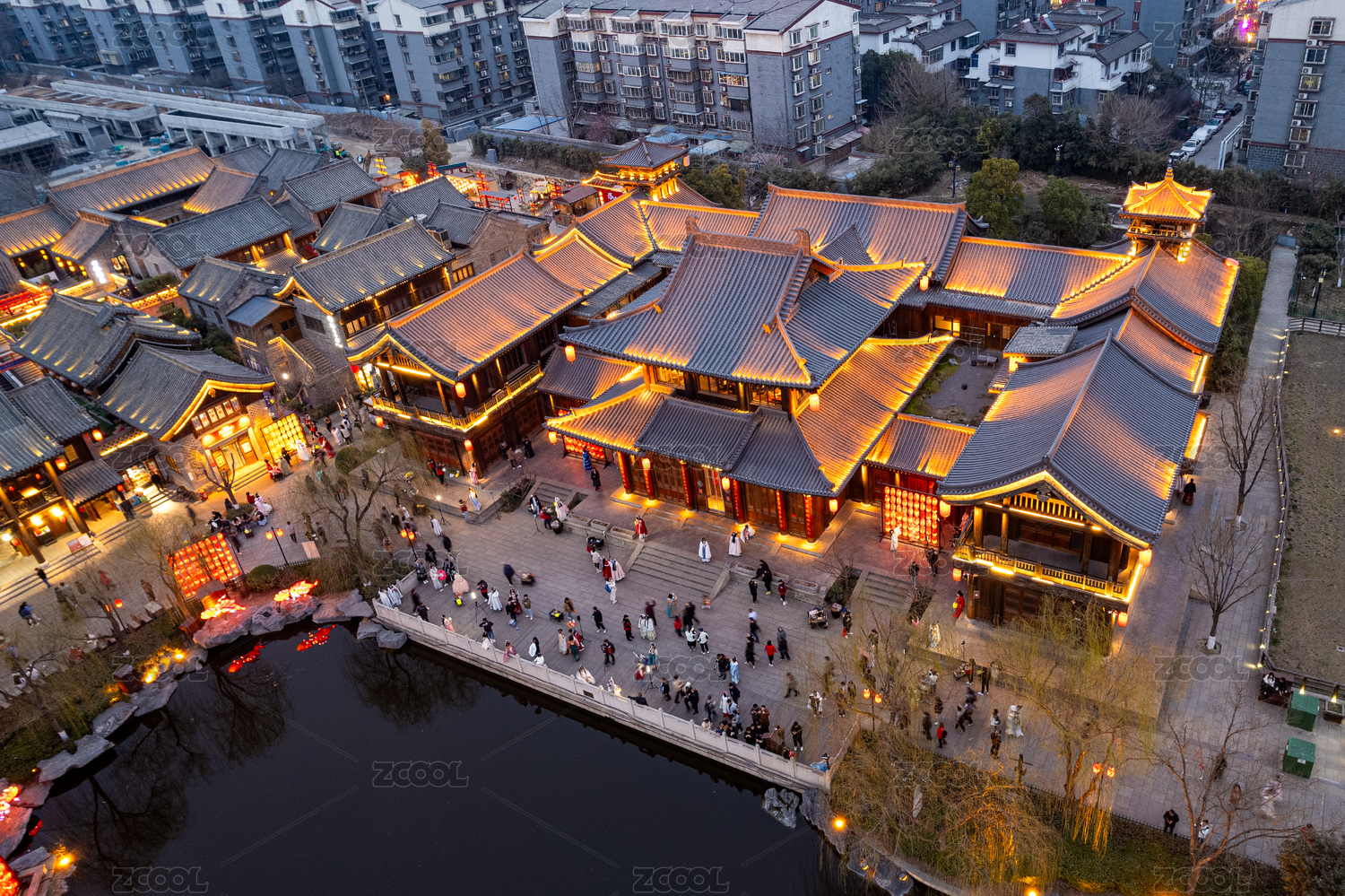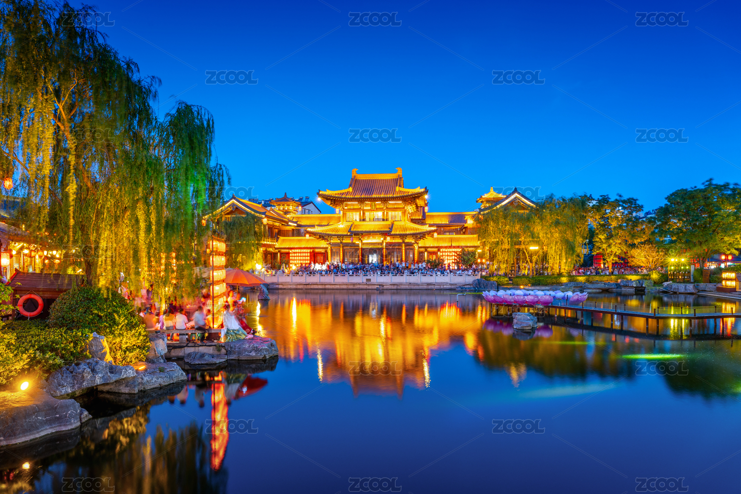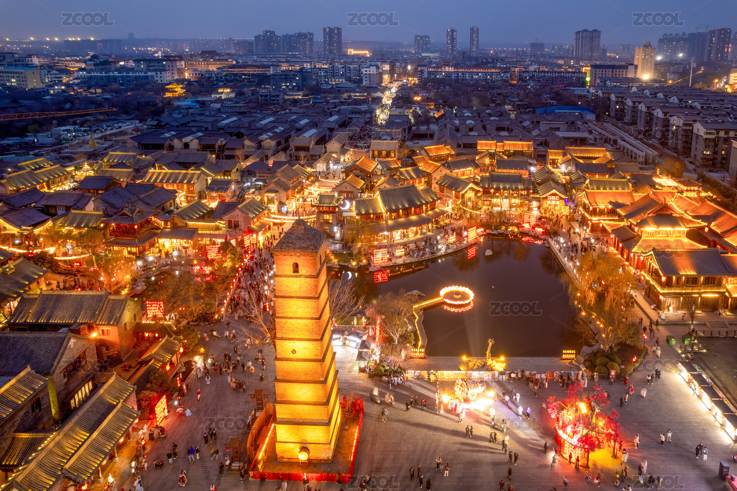 中國河南省洛陽洛邑古城河畔復(fù)古建筑景觀