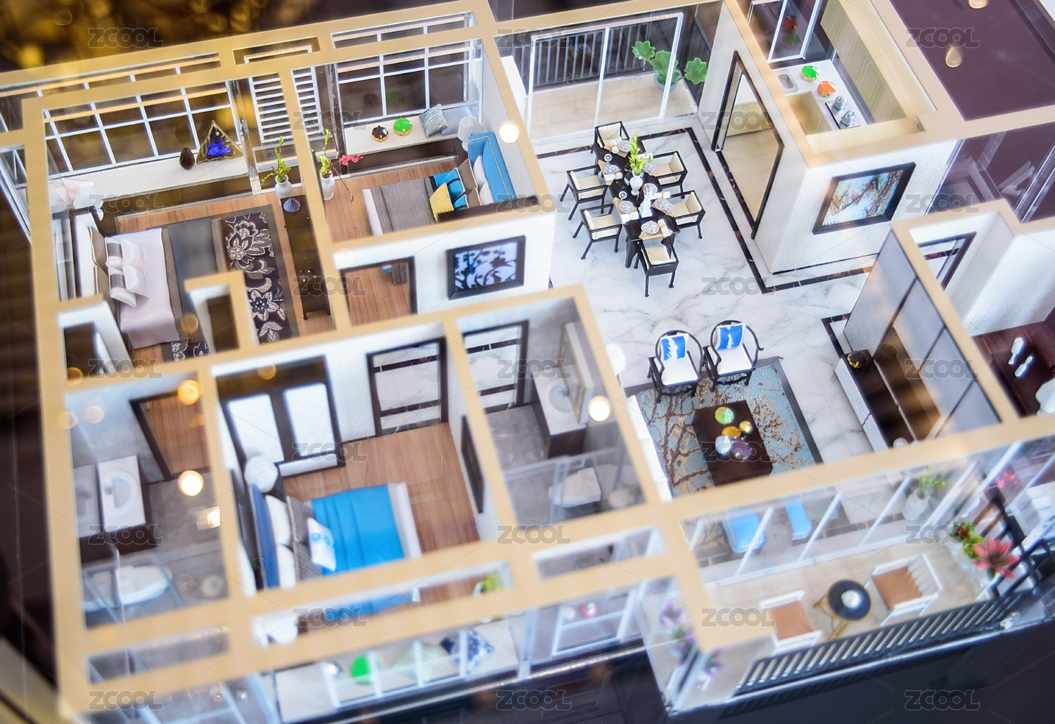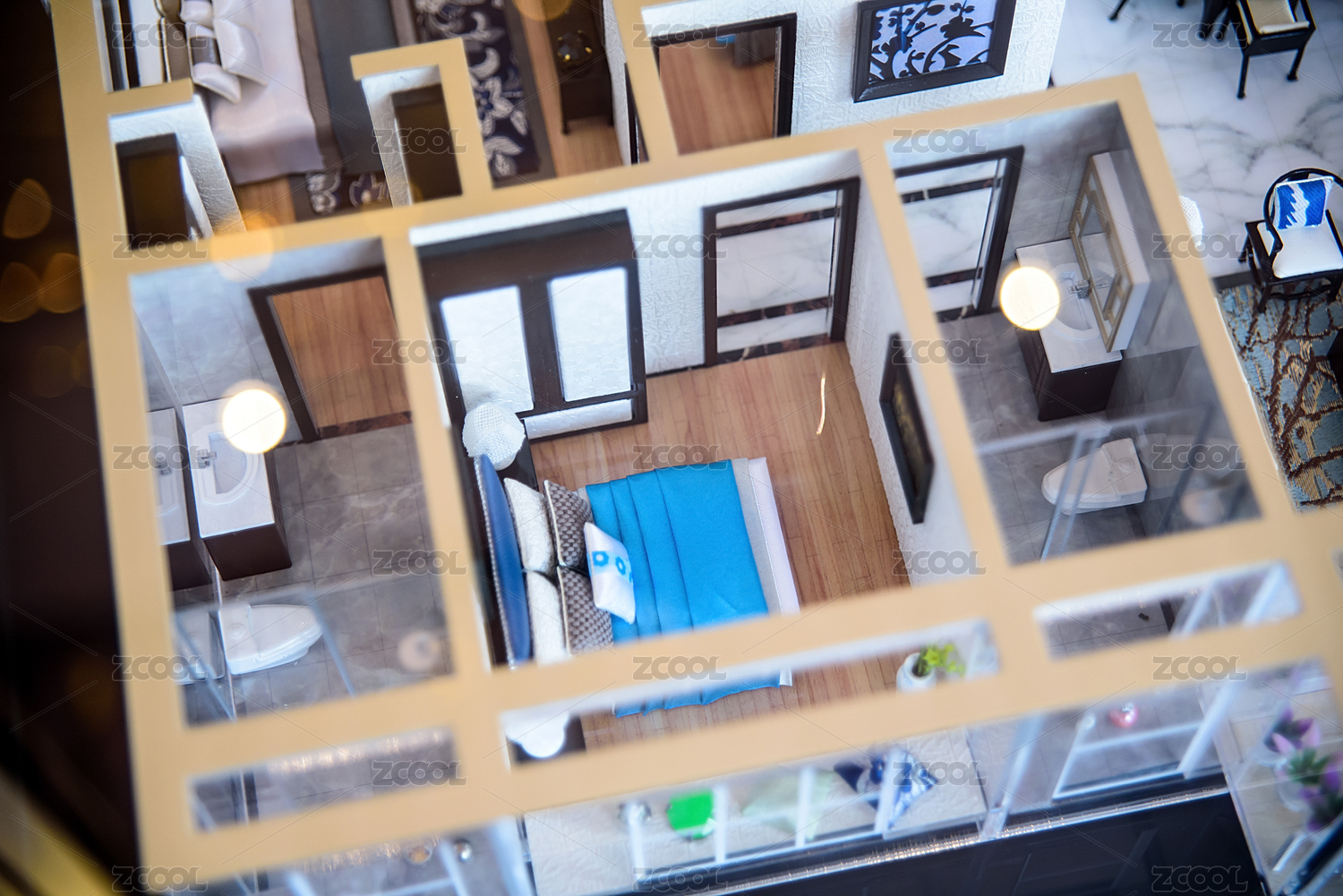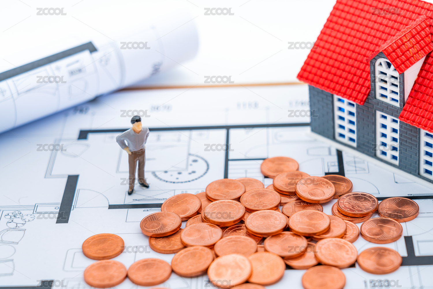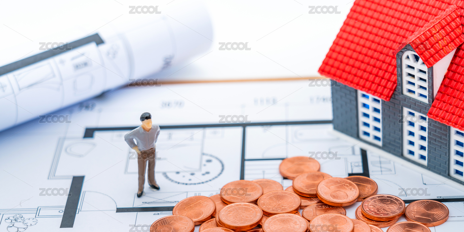 房子、人偶、房屋戶(hù)型圖——買(mǎi)房裝修概念