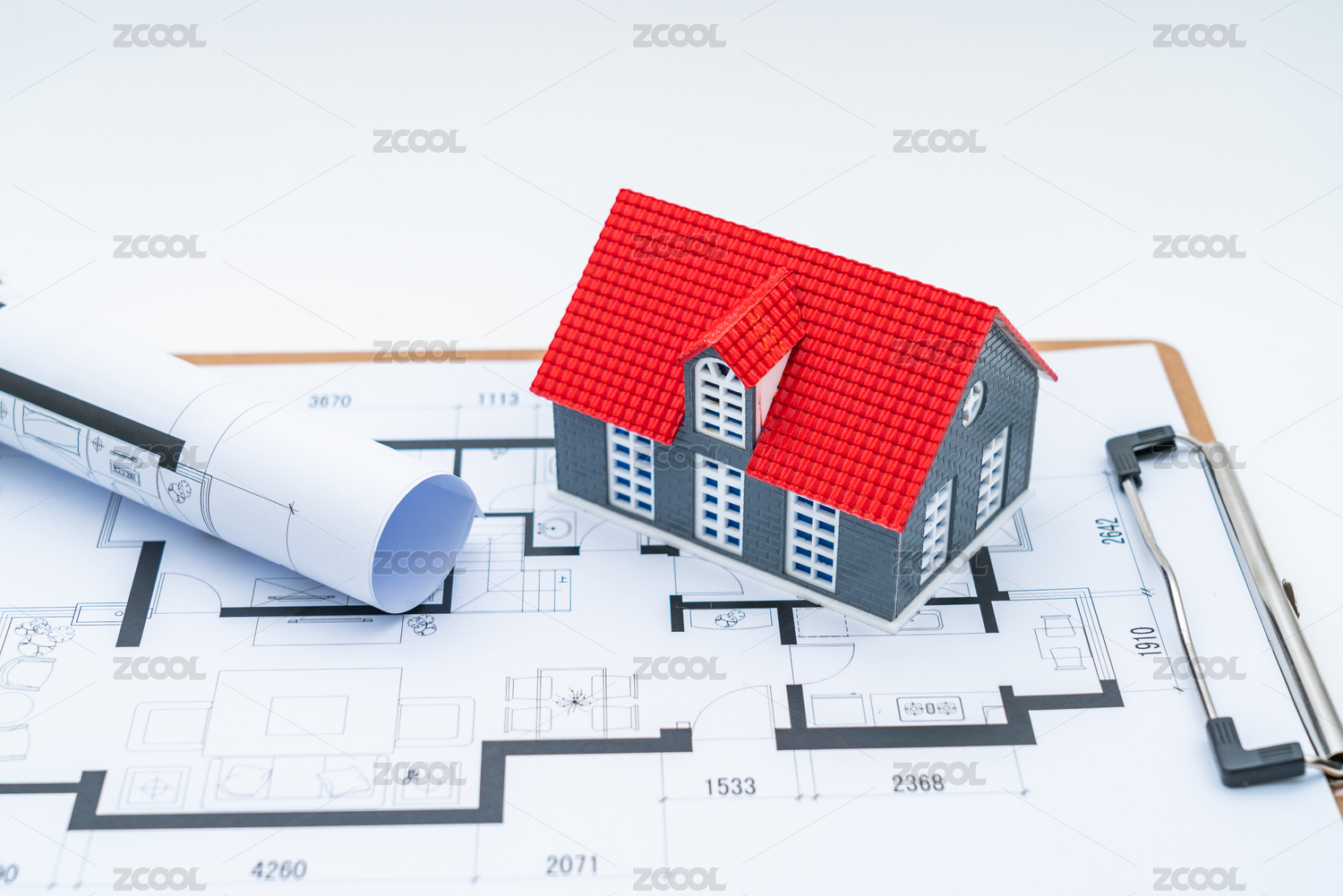 房子模型放在戶(hù)型圖圖紙上——買(mǎi)房裝修概念