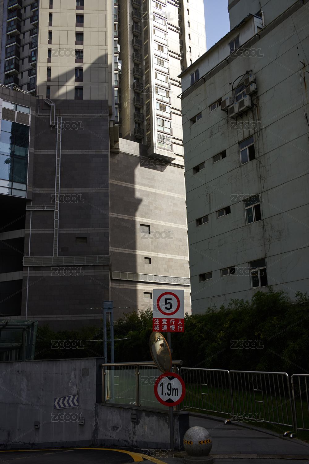 地下車庫(kù)入口和限速標(biāo)識(shí)牌