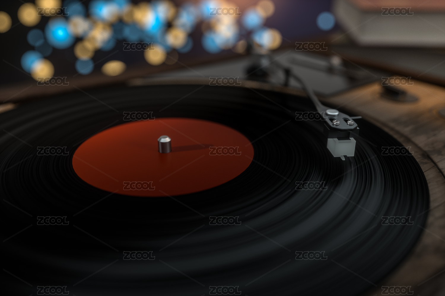 木紋黑膠唱片機(jī)與流動的旋律 三維渲染