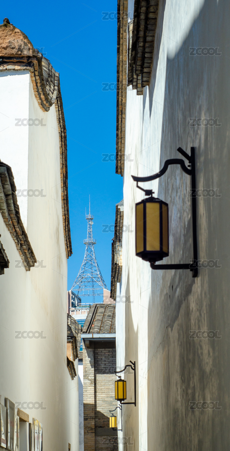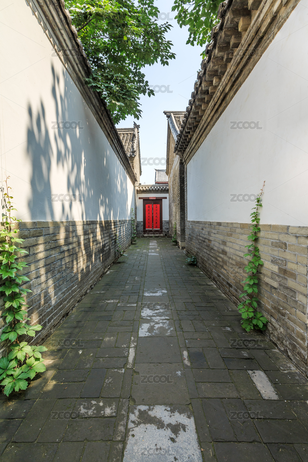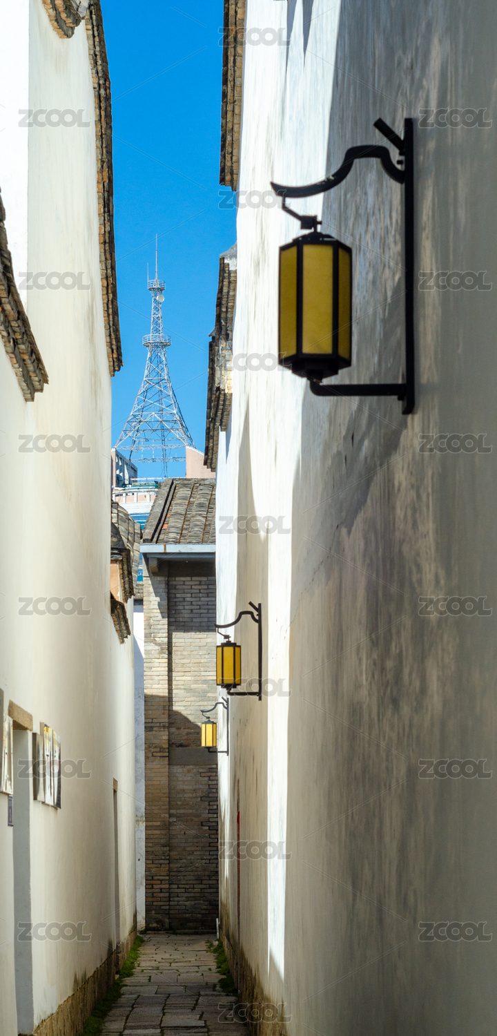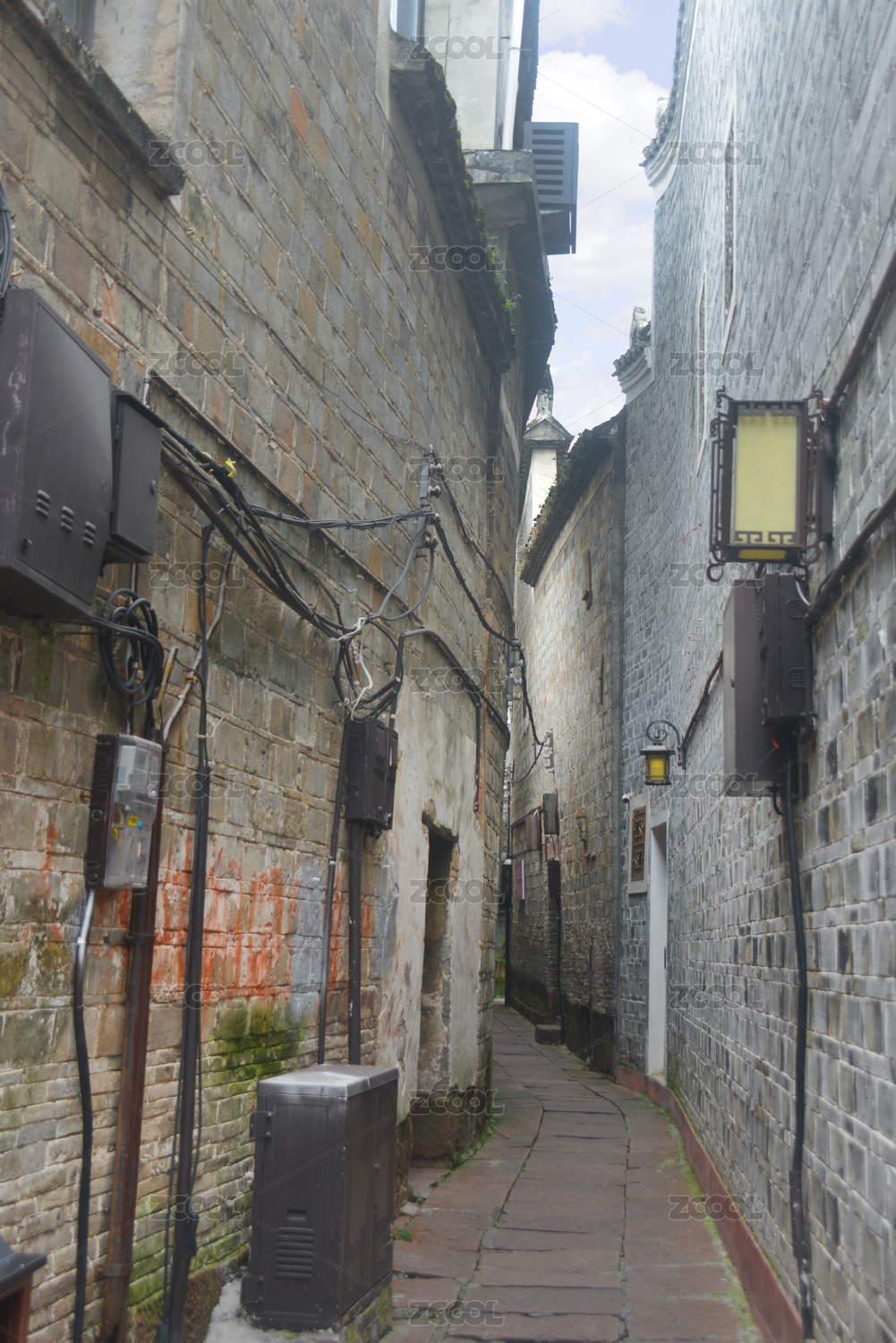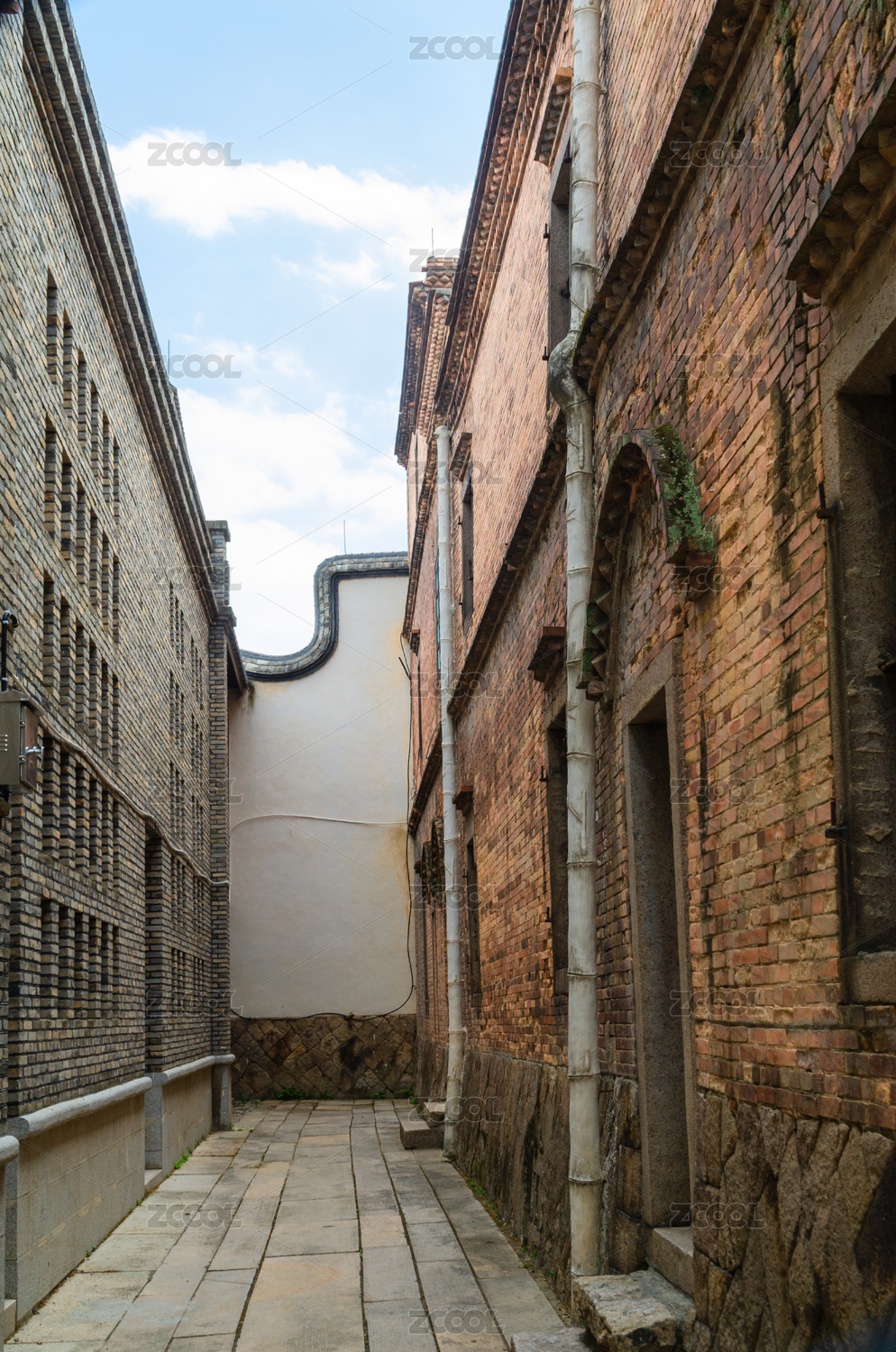 福州上下杭狹窄巷道兩側(cè)磚墻與灰墻景觀