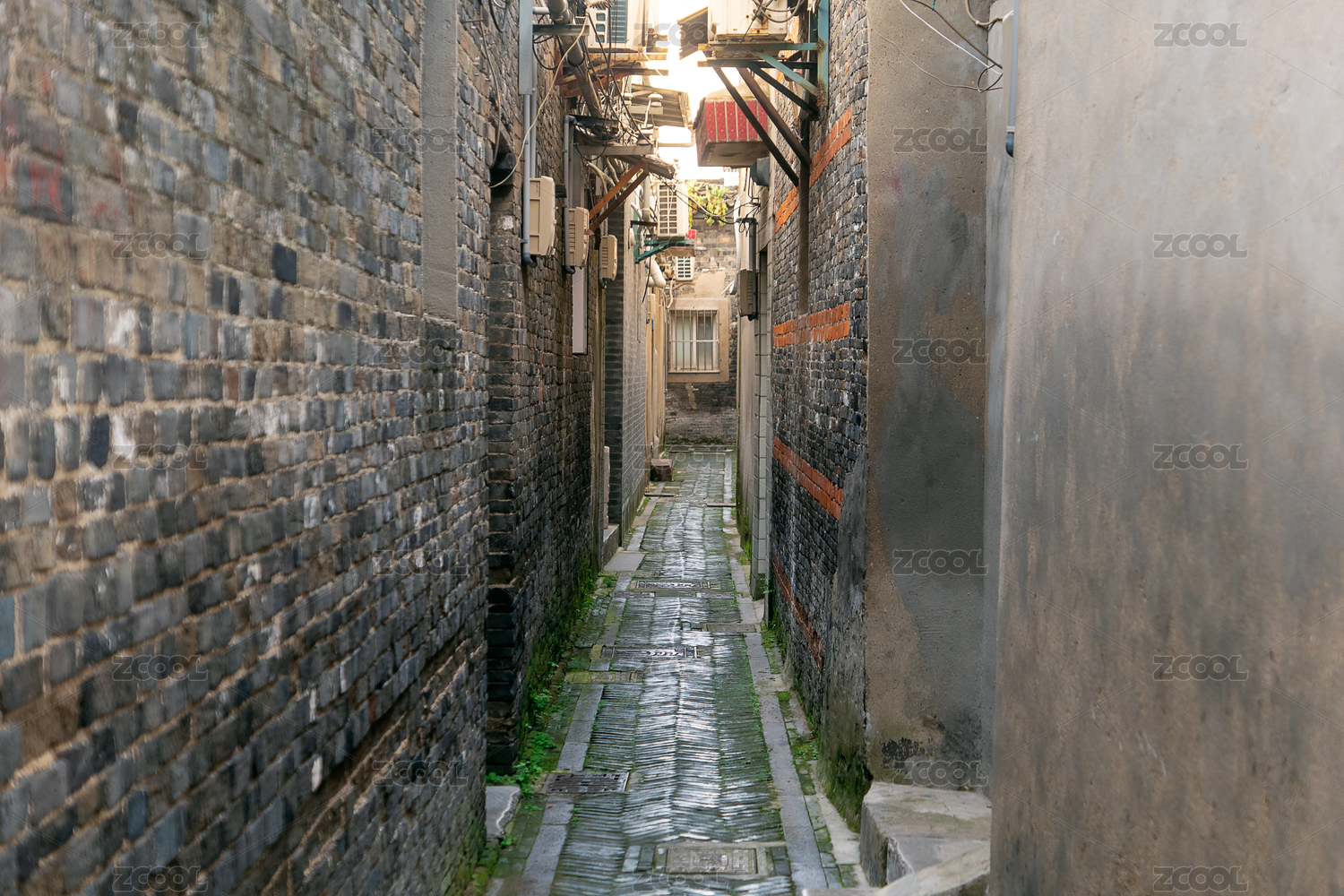 上海石庫門舊式里弄居民區(qū)狹窄弄堂過道