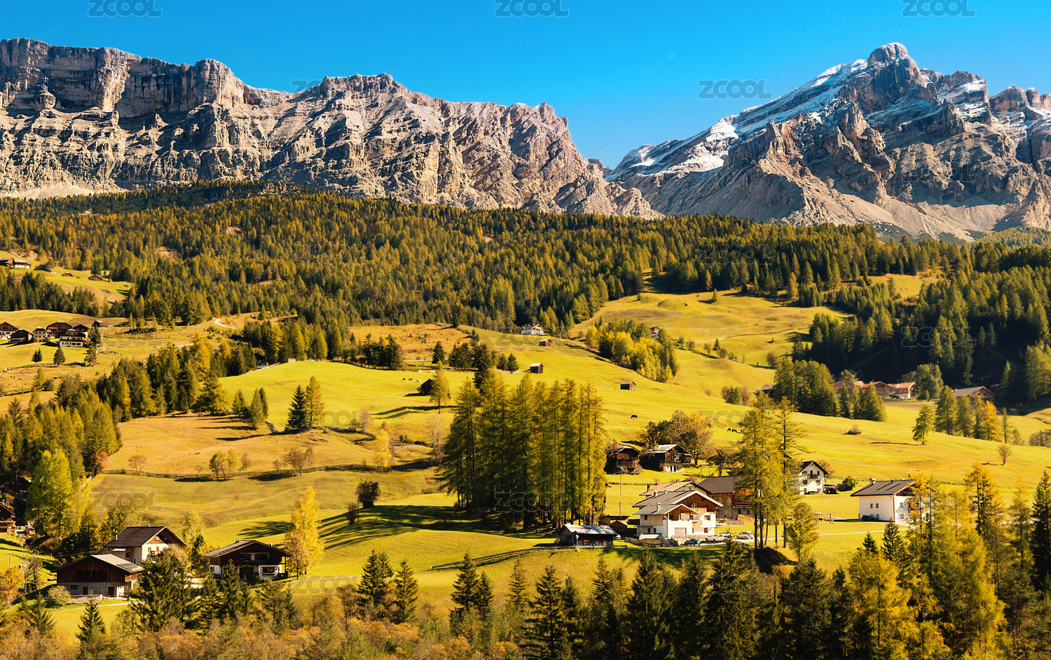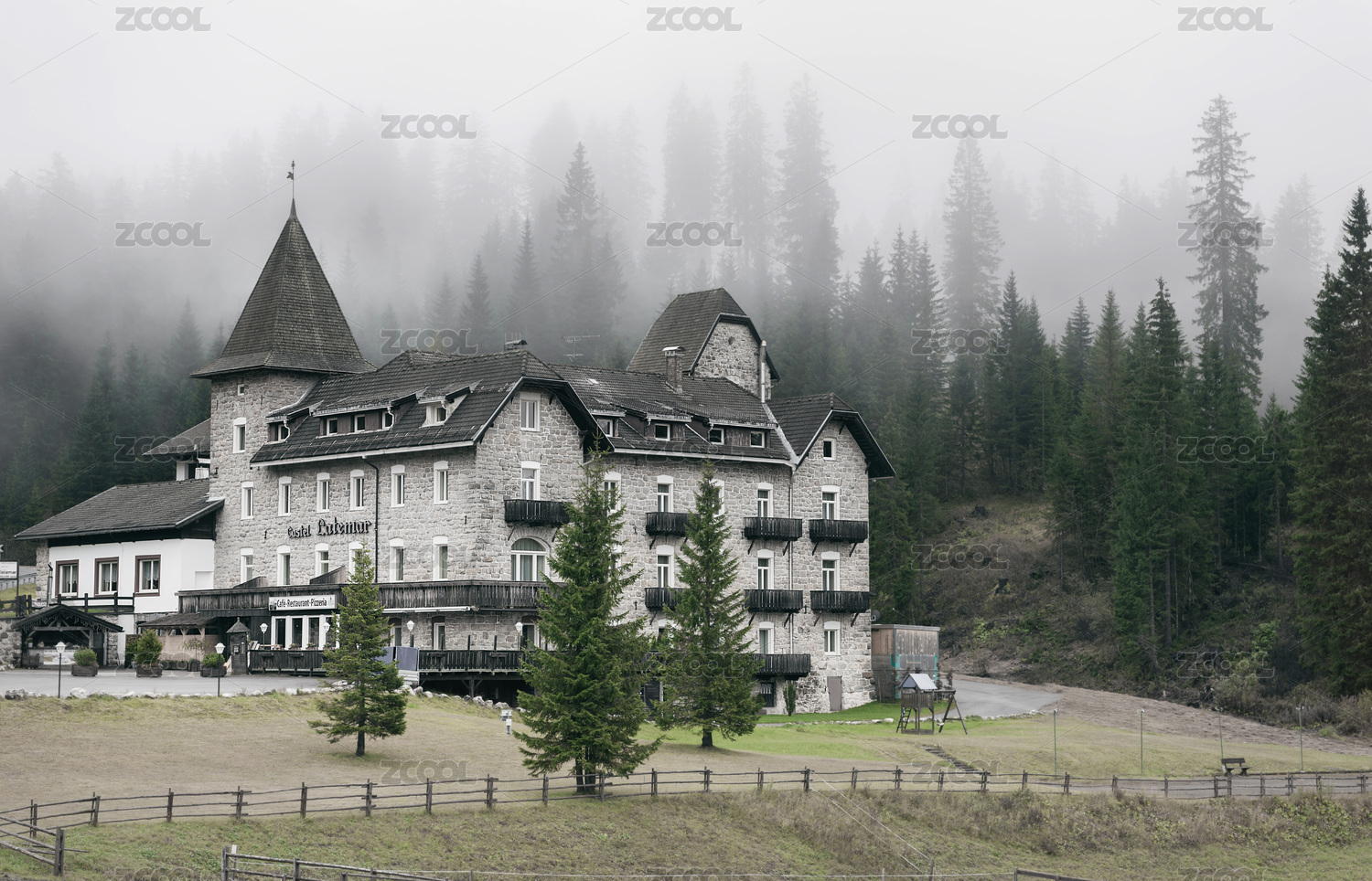 歐洲意大利多洛米蒂山區(qū)無人風(fēng)景中的酒店