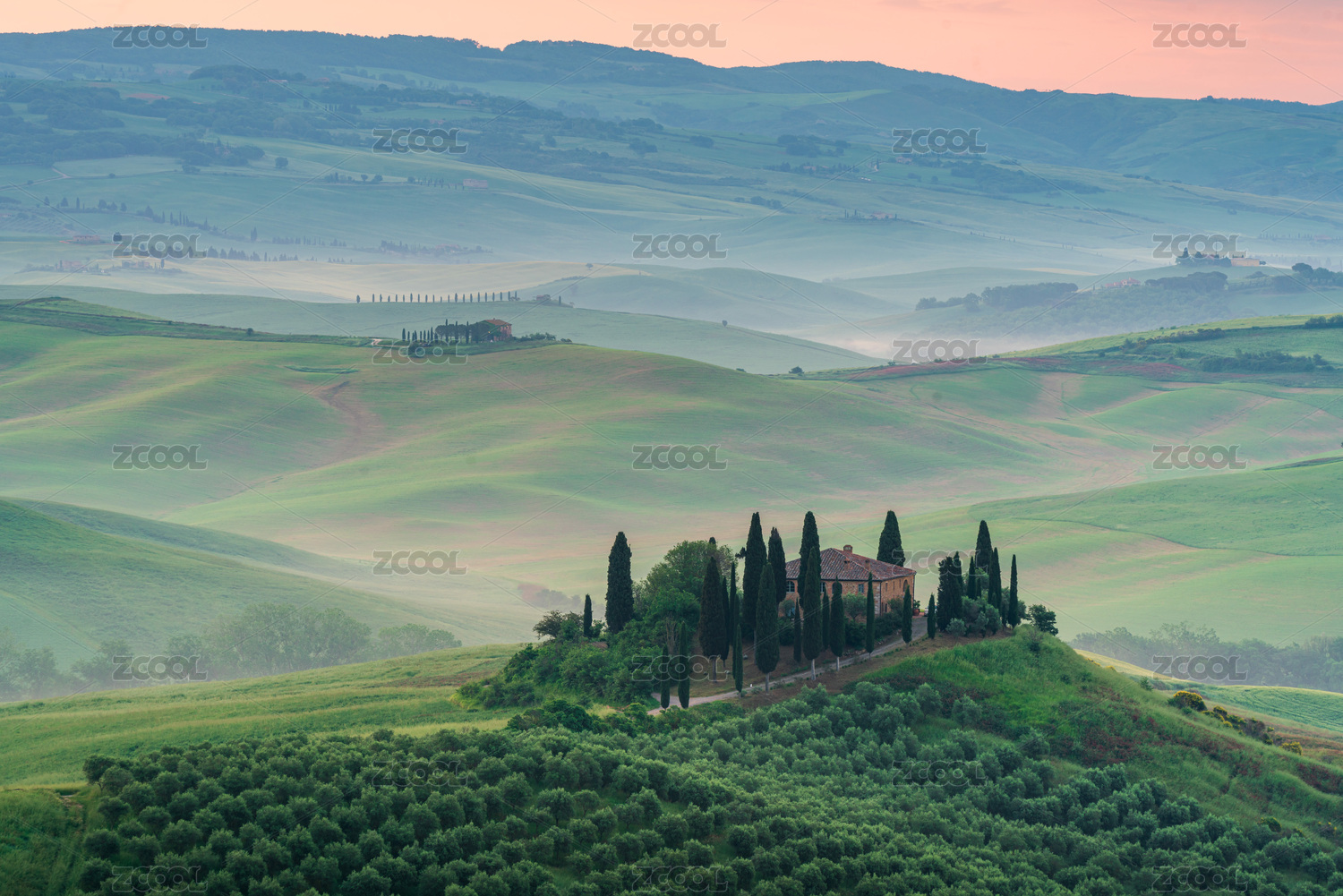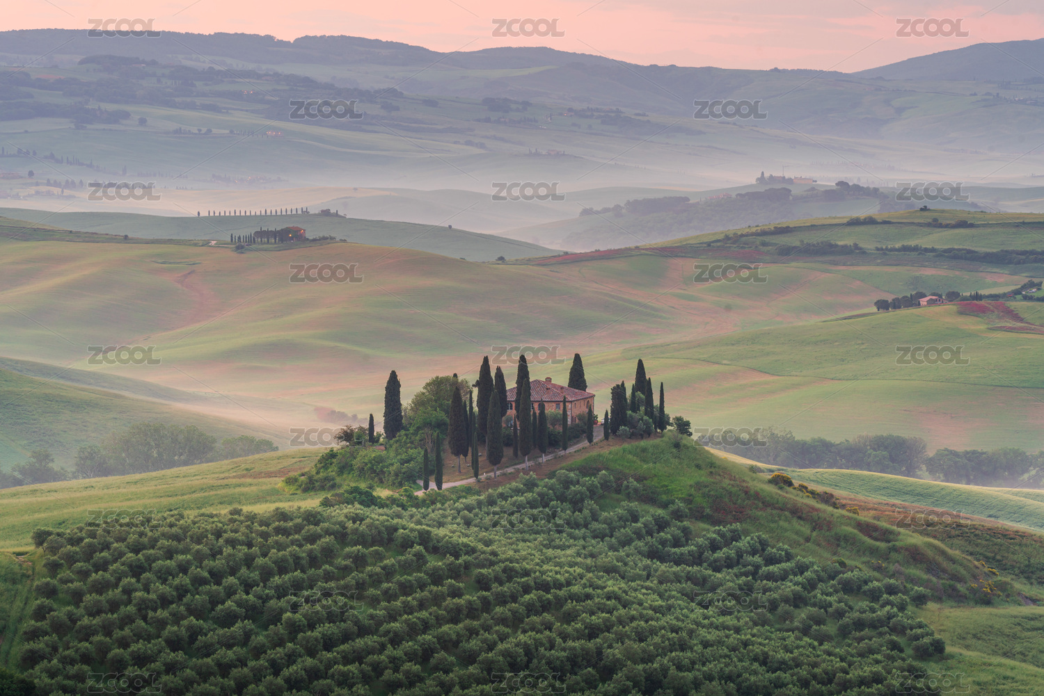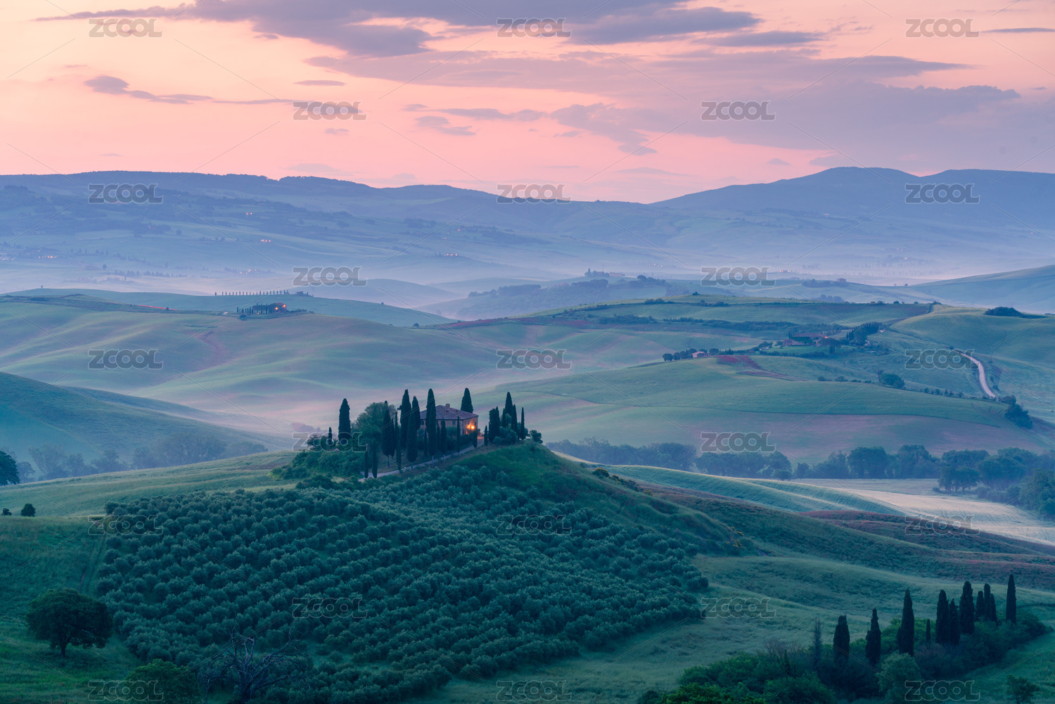 意大利托斯卡納奧爾恰谷農(nóng)莊田園日出風(fēng)景