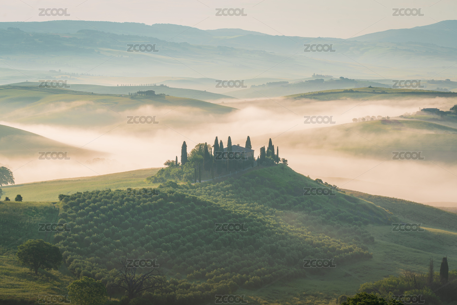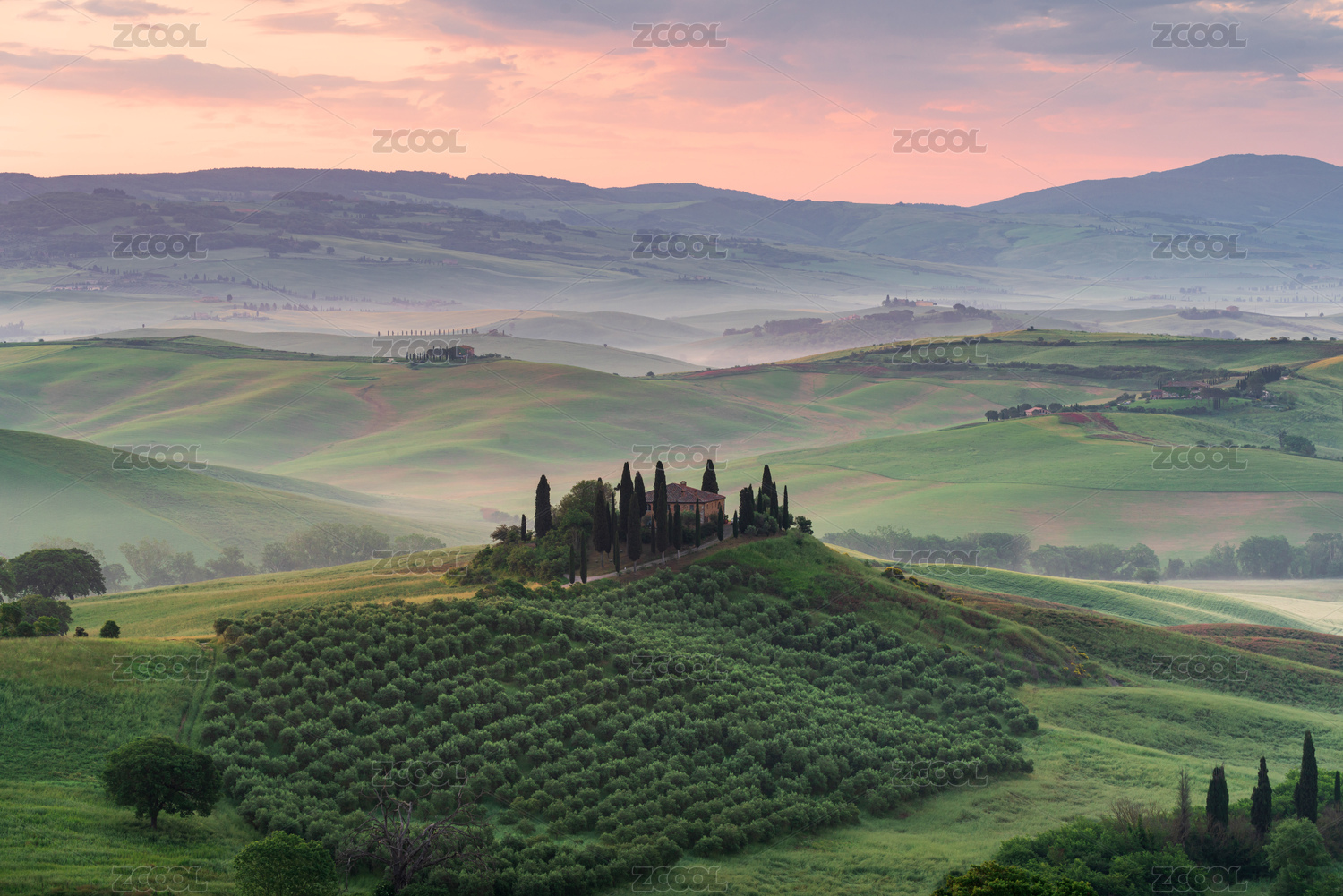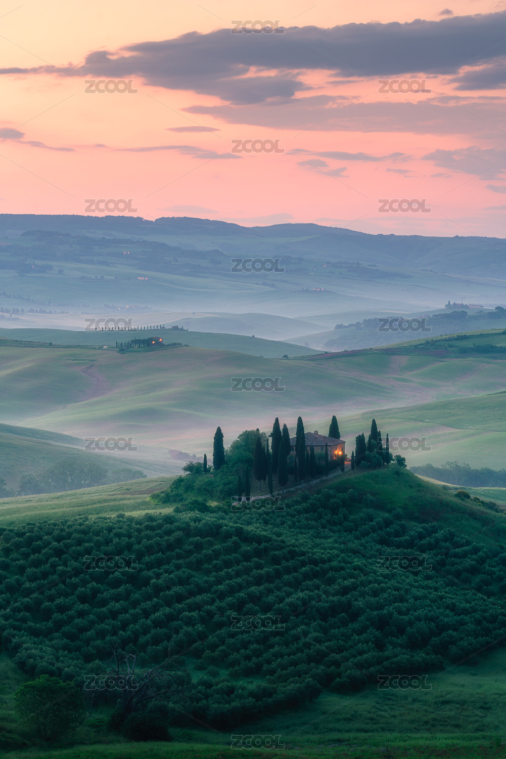 意大利托斯卡納奧爾恰谷農(nóng)莊田園日出風(fēng)景