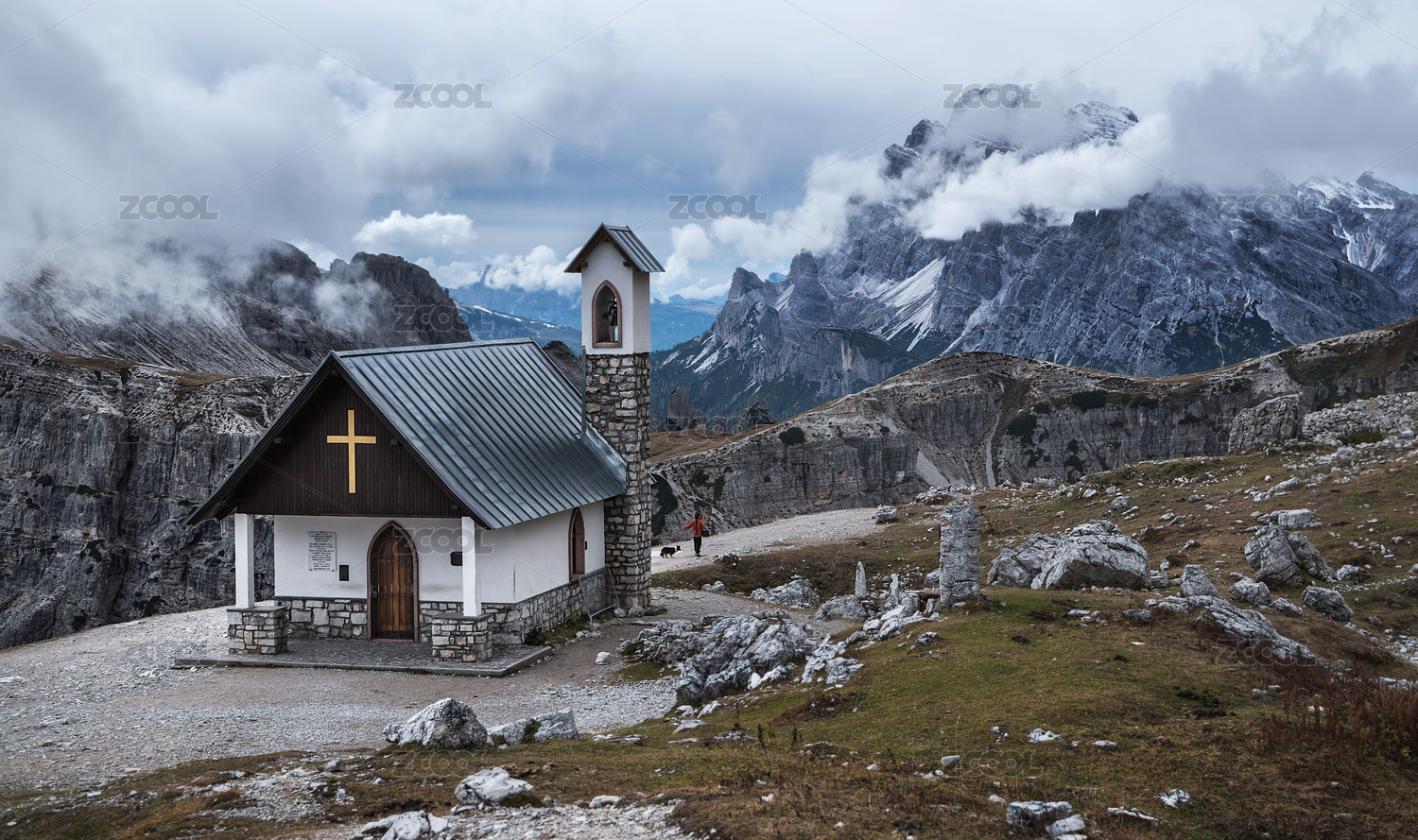 歐洲意大利多洛米蒂山區(qū)無人風(fēng)景中的教堂