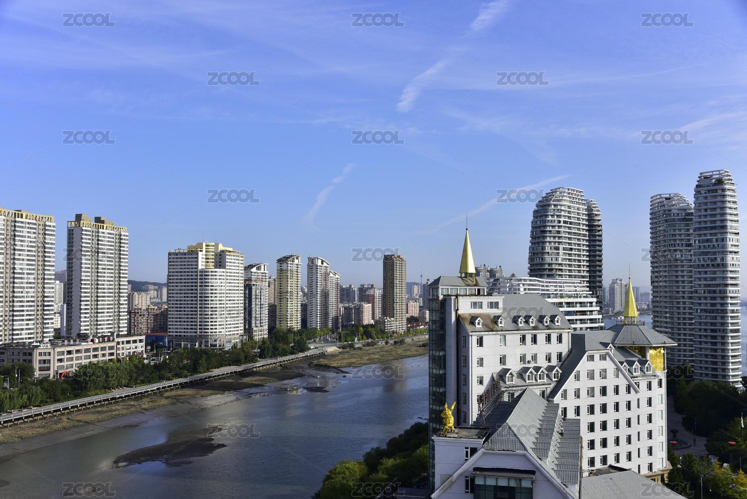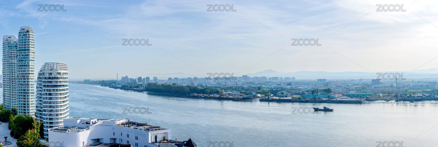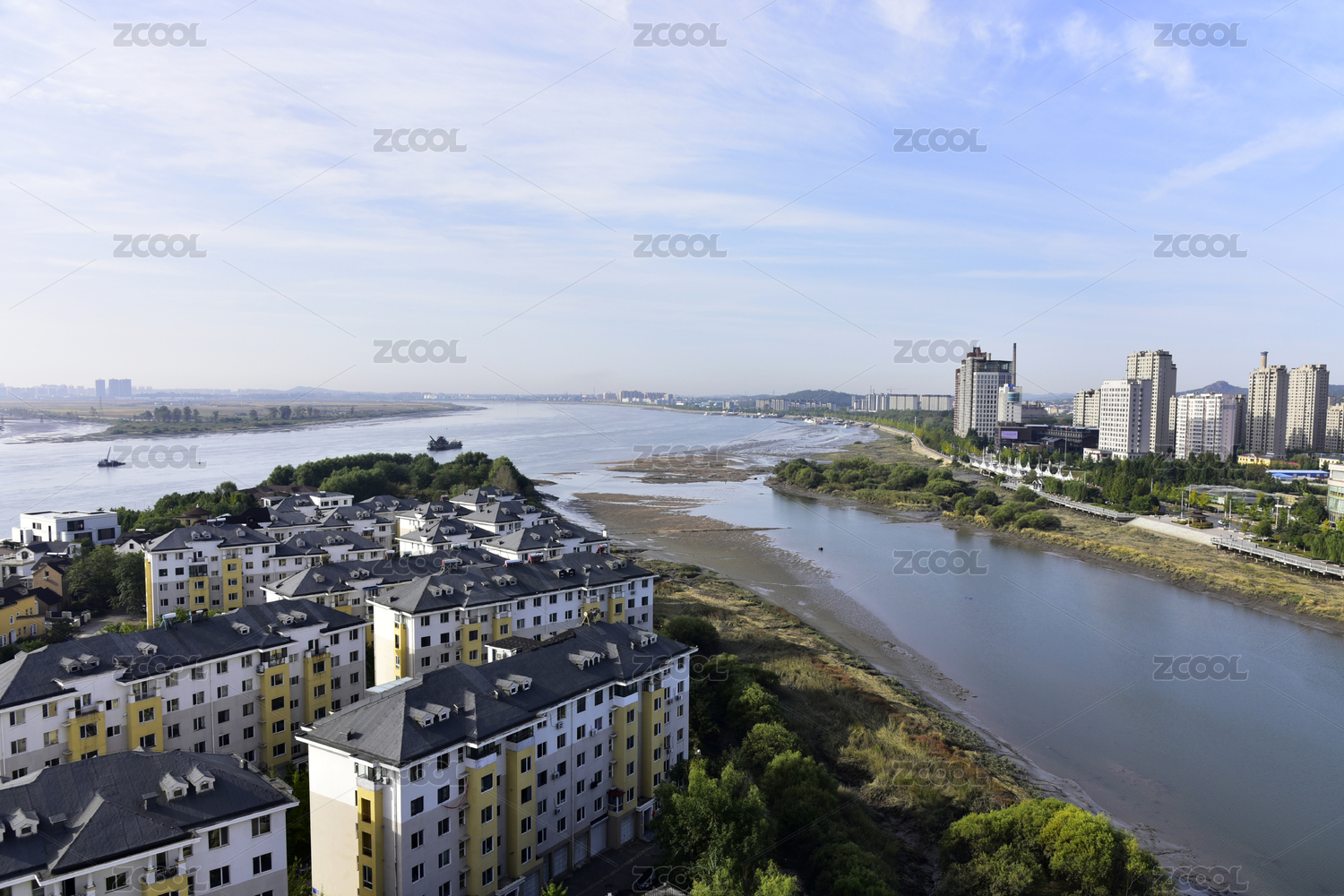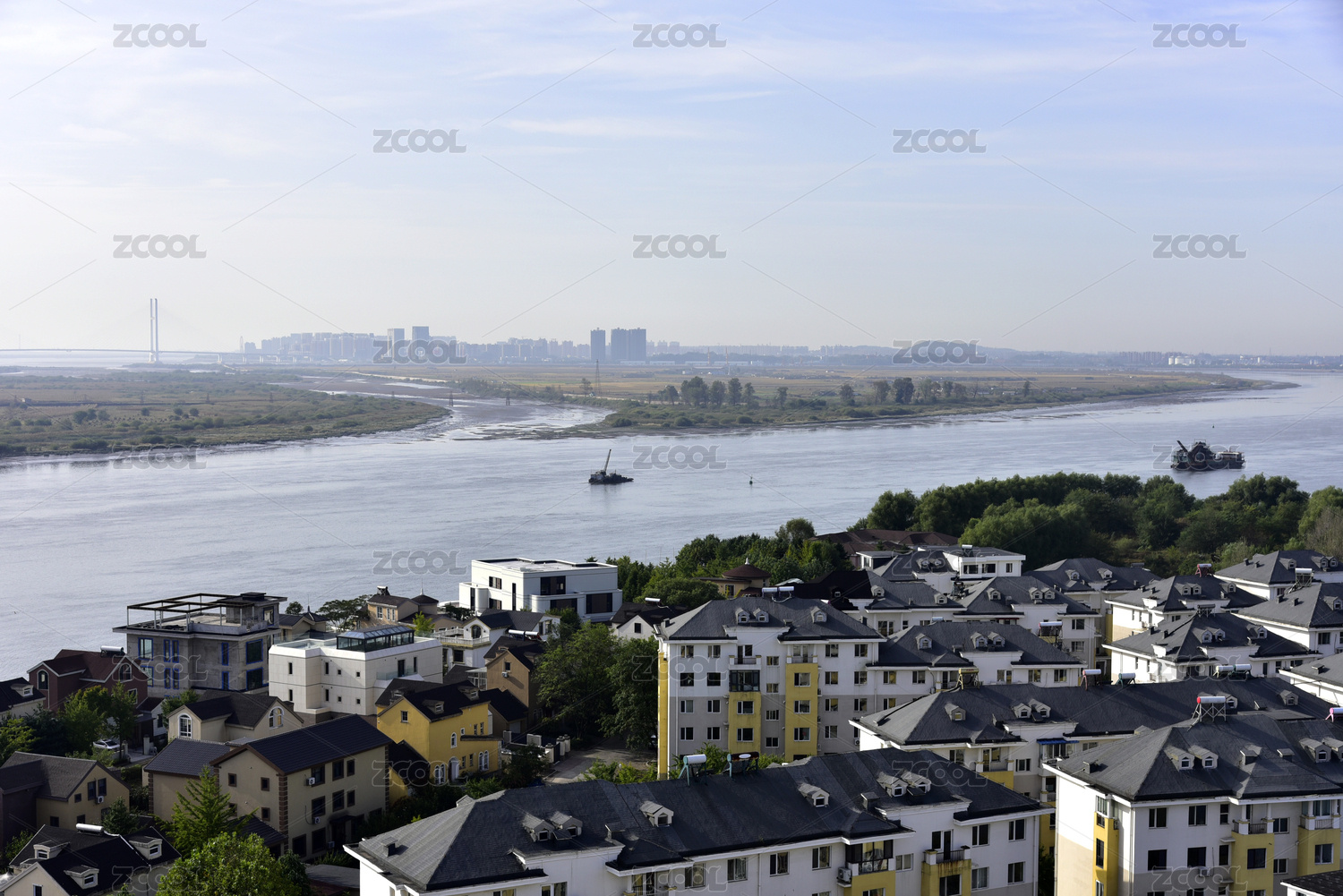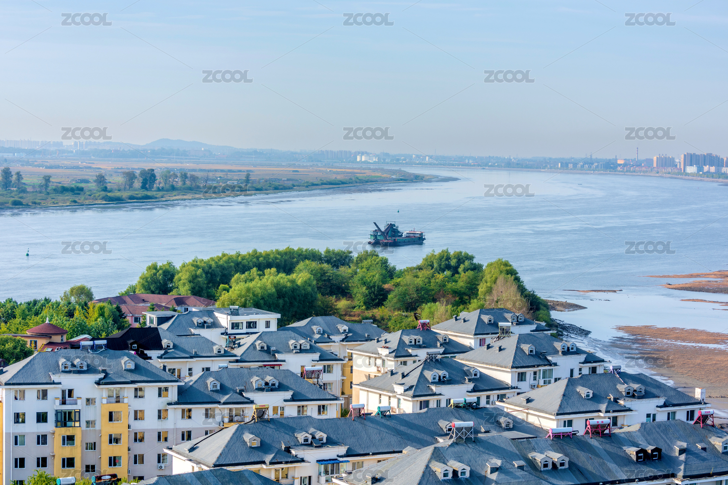遼寧省丹東市月亮島上俯瞰鴨綠江畔風(fēng)景