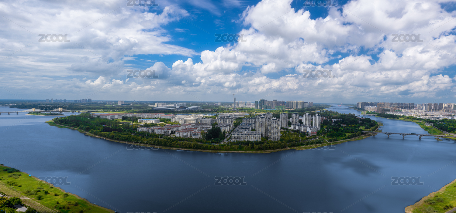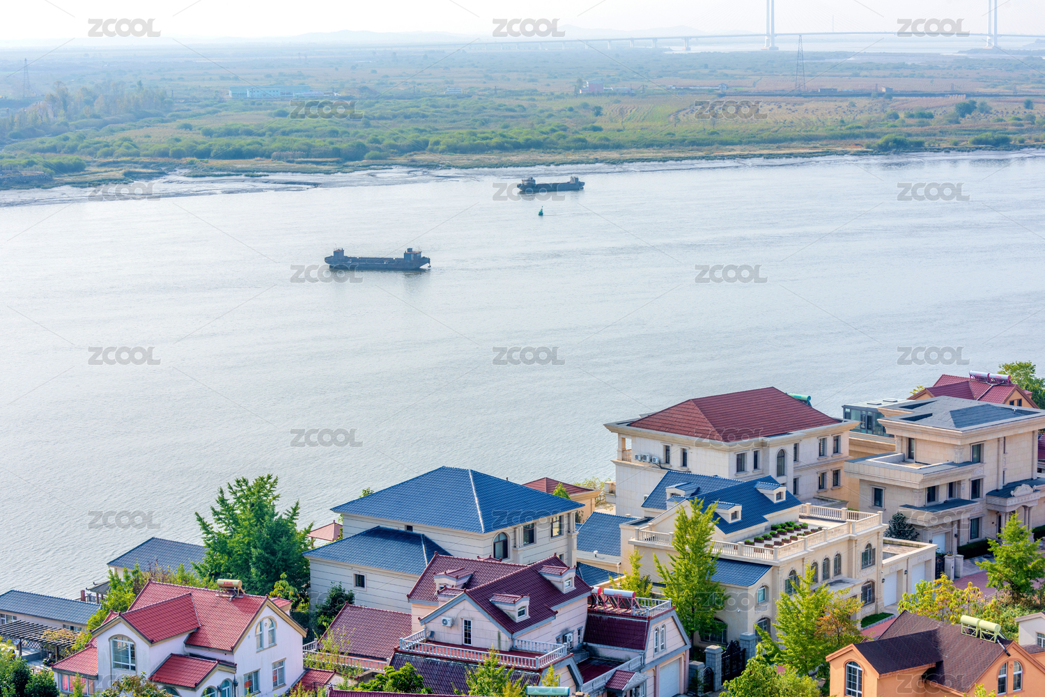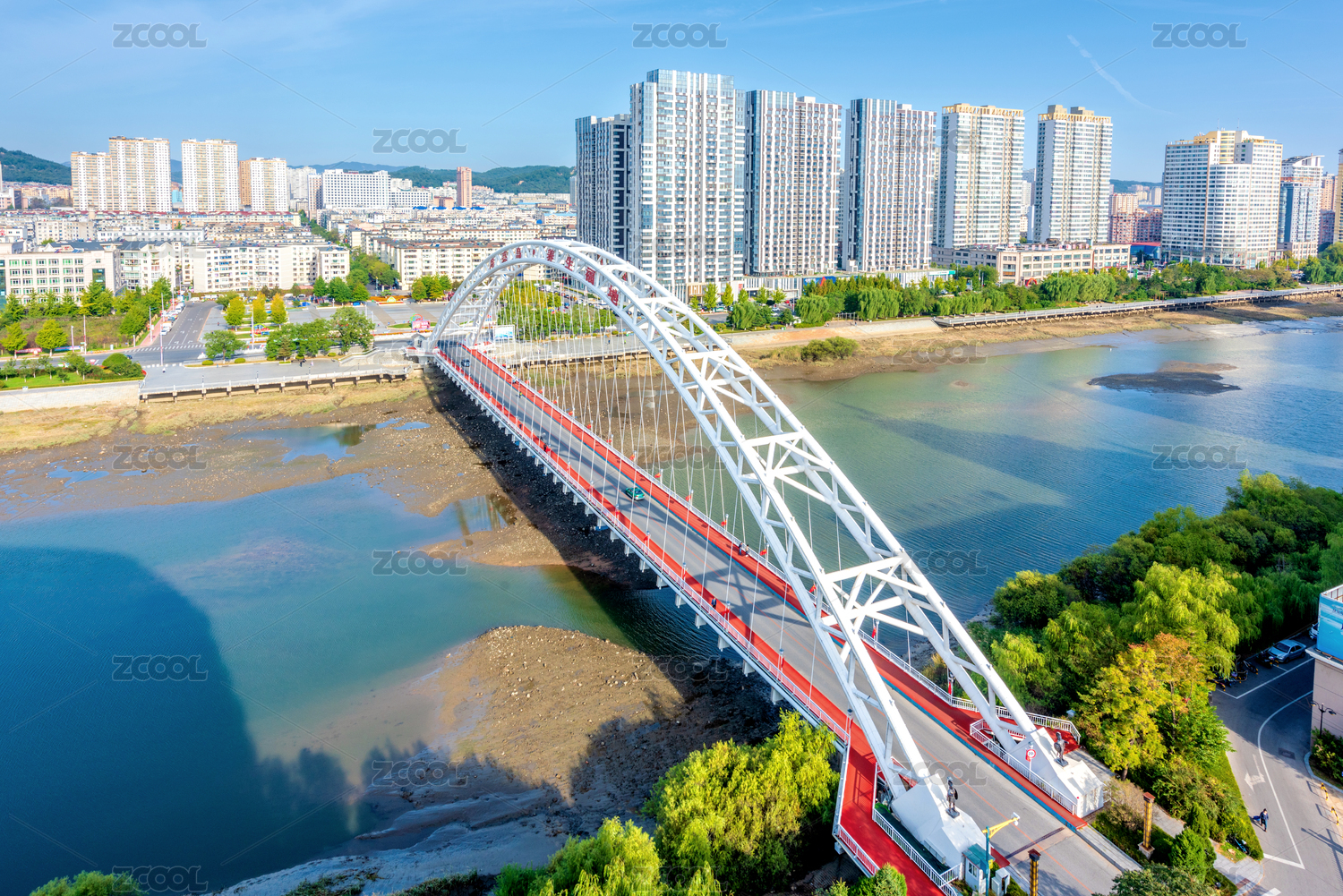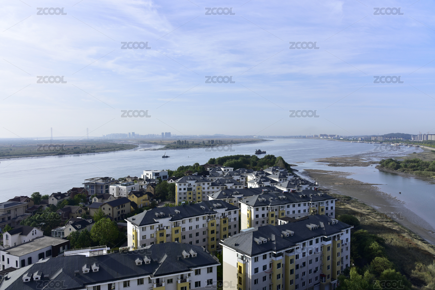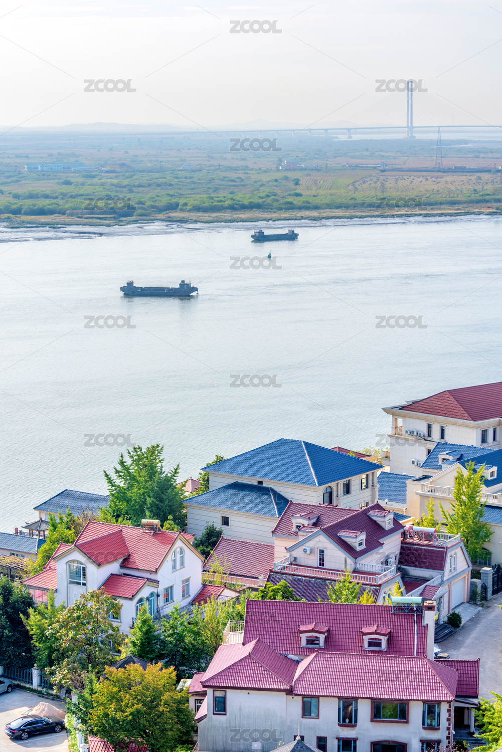 遼寧省丹東市月亮島上俯瞰鴨綠江畔風(fēng)景