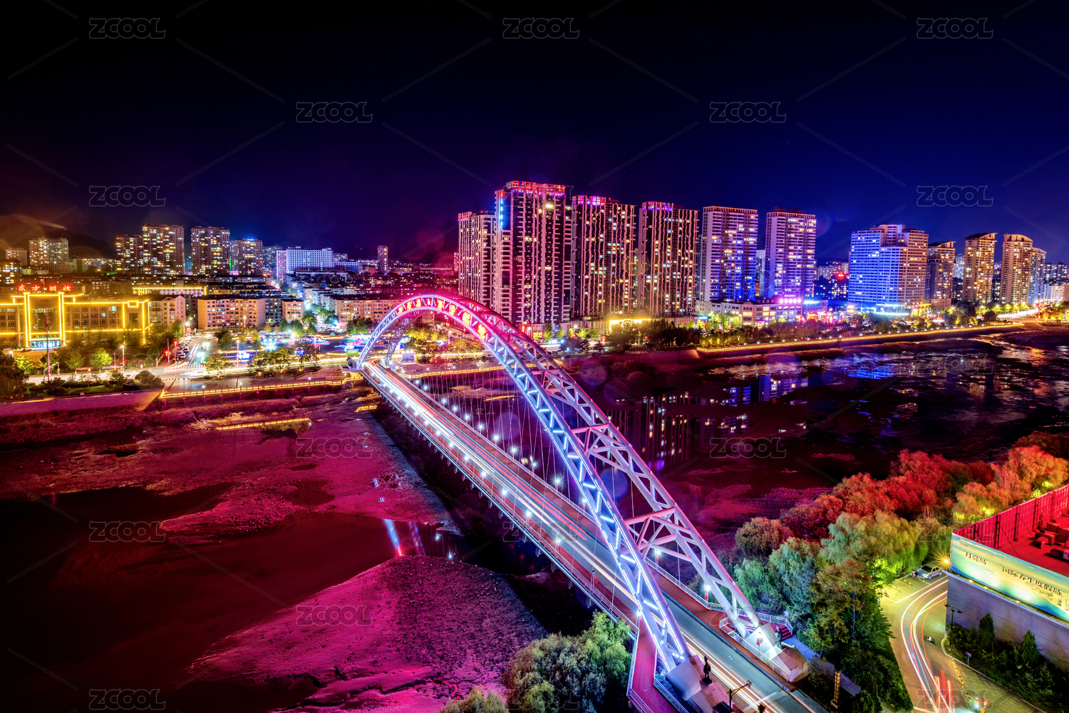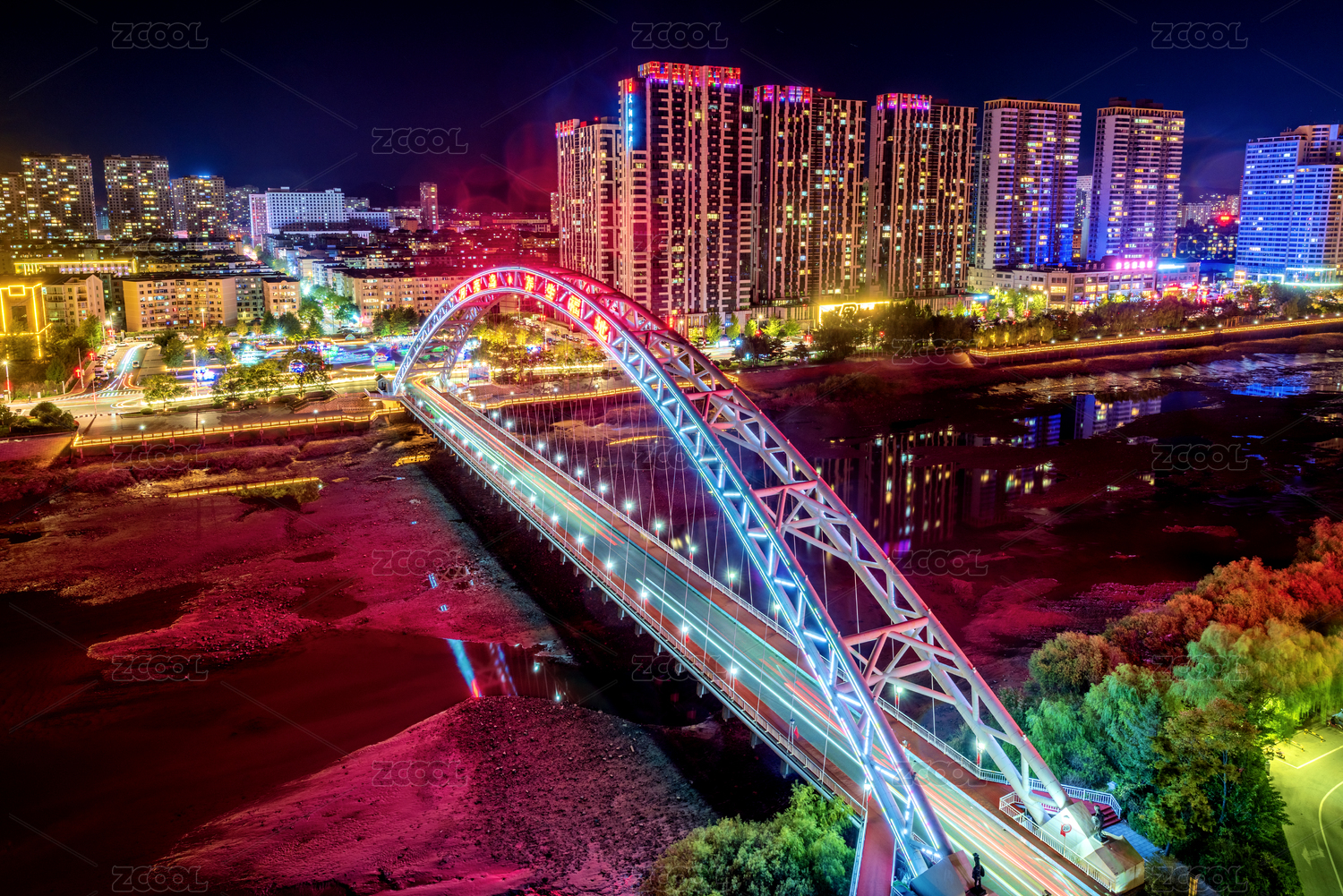 中國遼寧丹東月亮島大橋夜景風(fēng)光