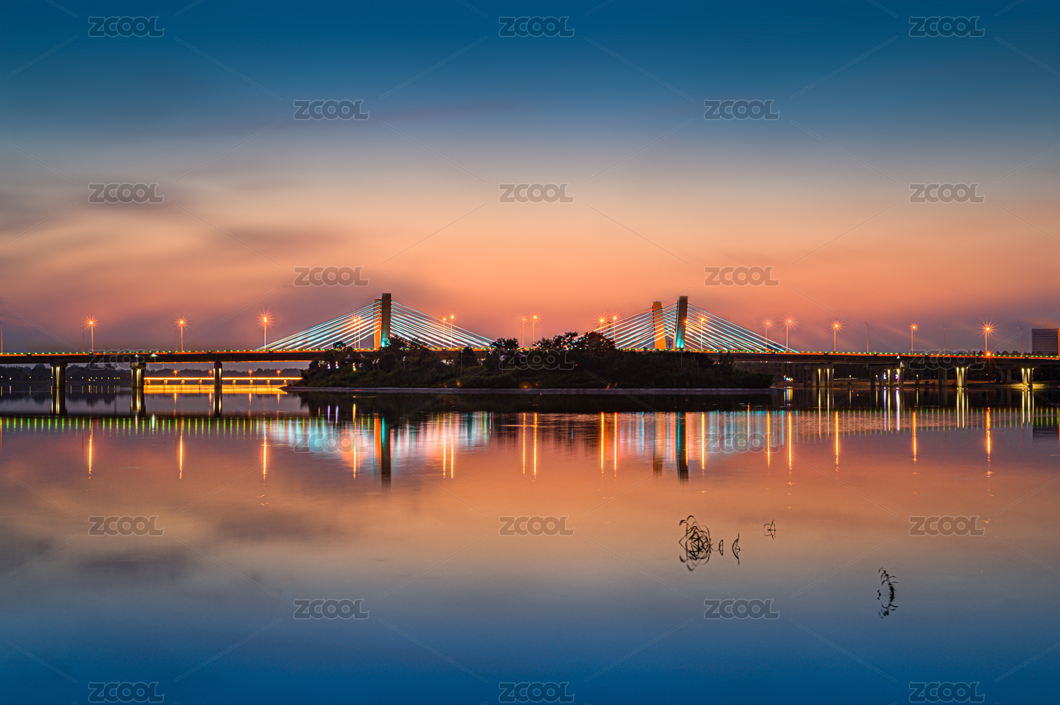 中國安徽省六安市裕安區(qū)月亮島赤壁路橋日落風(fēng)光