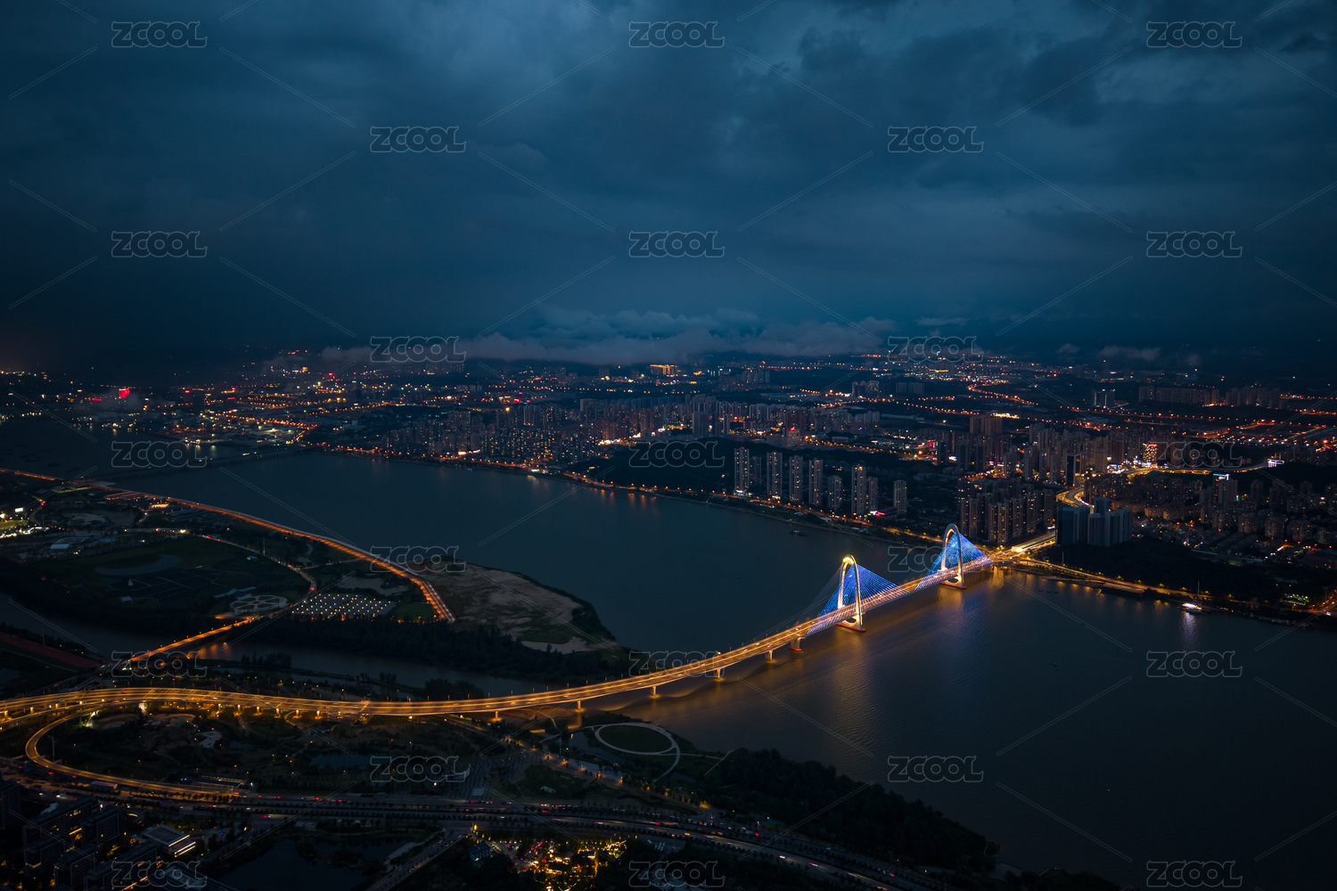 湖南長(zhǎng)沙湘江月亮島興聯(lián)路大橋夜景航拍