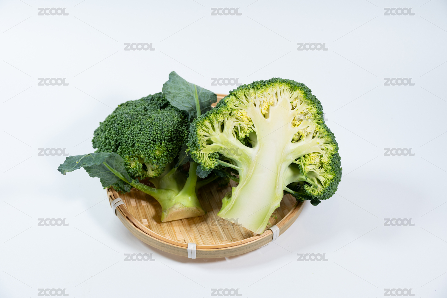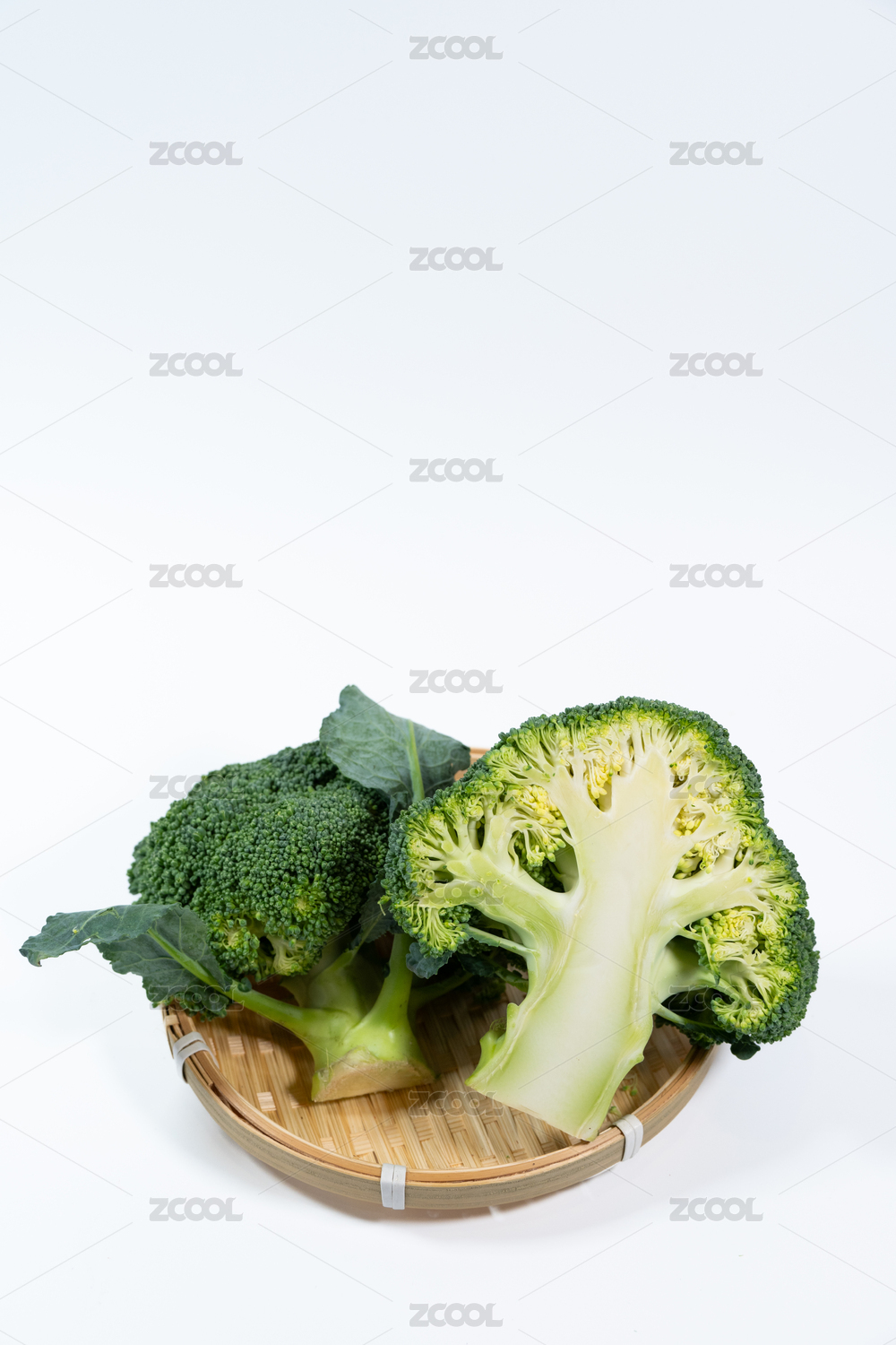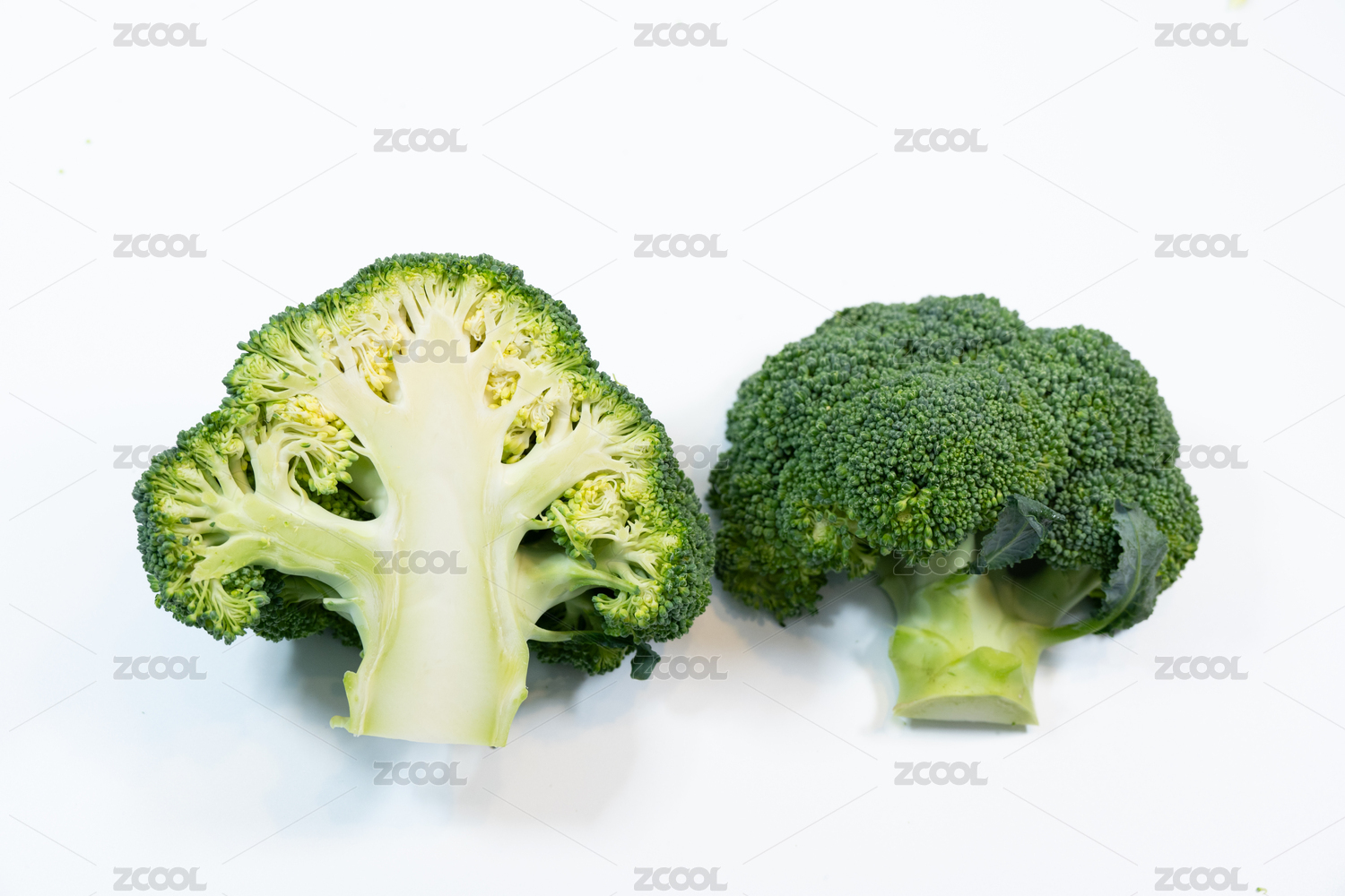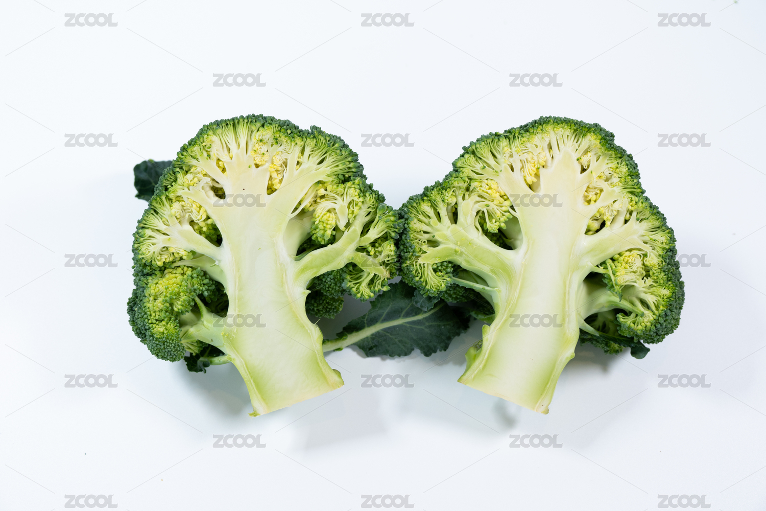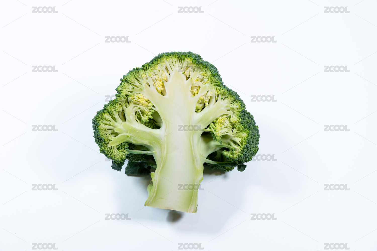 白色背景影棚靜物拍攝切開的西蘭花剖面特寫