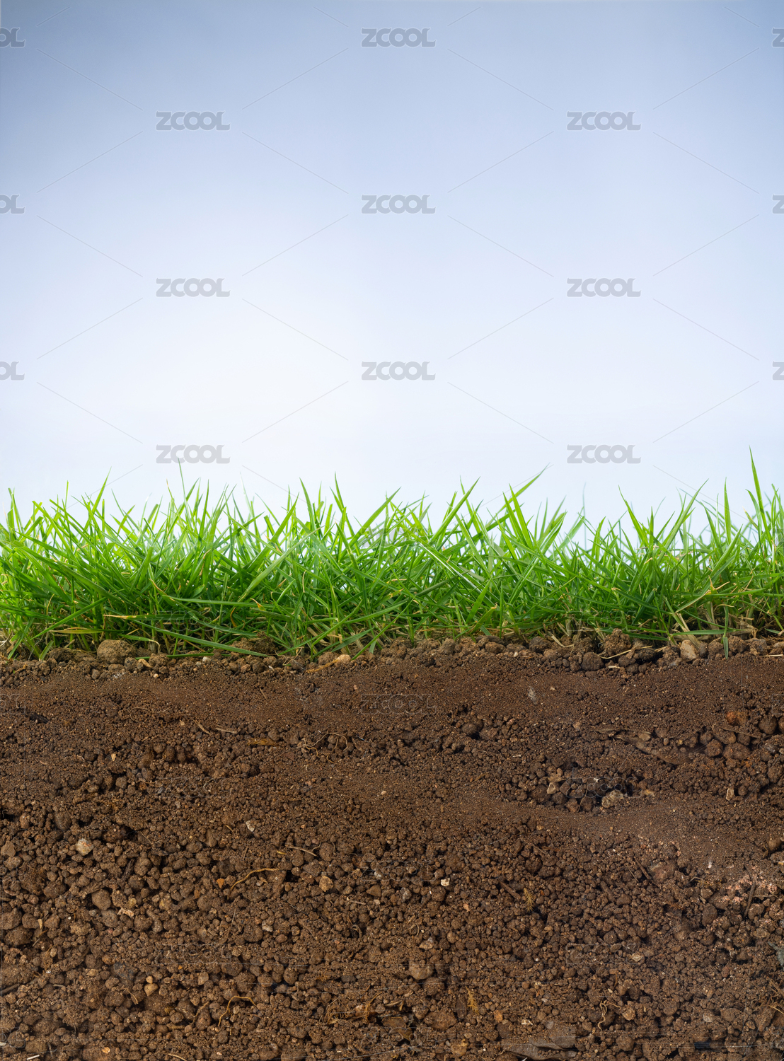 綠草和土壤的剖面攝影圖