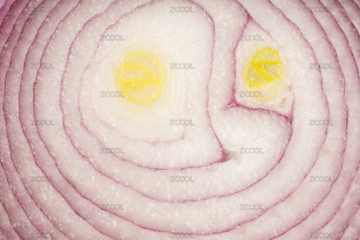 微距拍攝切開的洋蔥的剖面