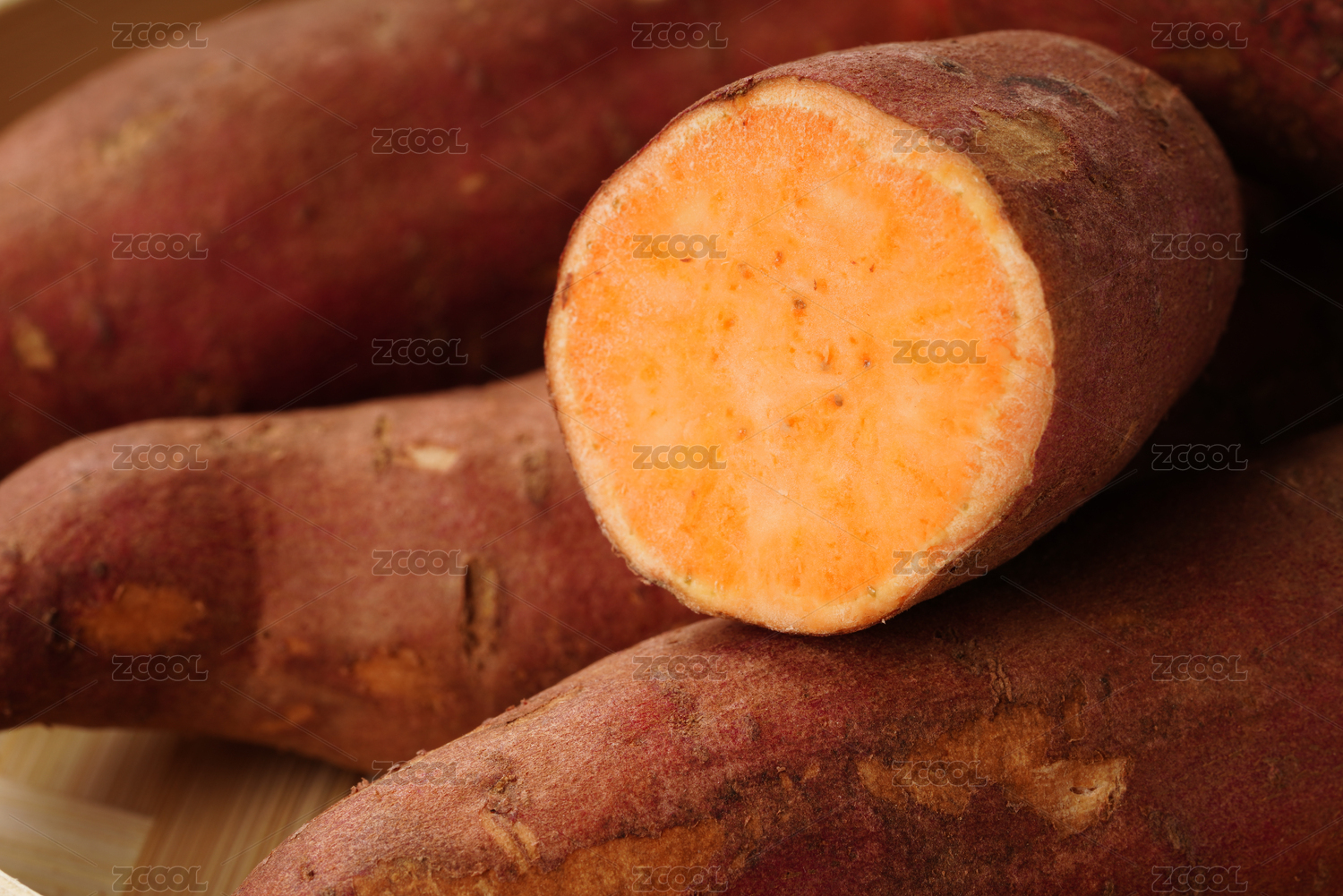 微距拍攝切開的紅薯剖面圖