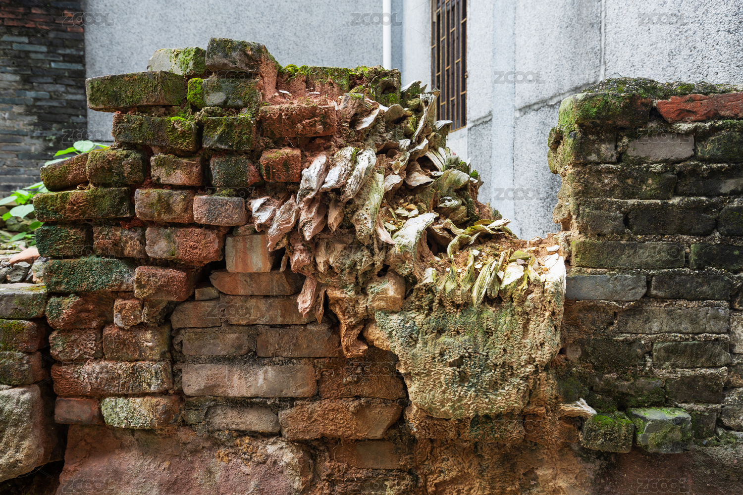 中國(guó)廣東省廣州番禺石樓鎮(zhèn)大嶺村蠔殼墻剖面