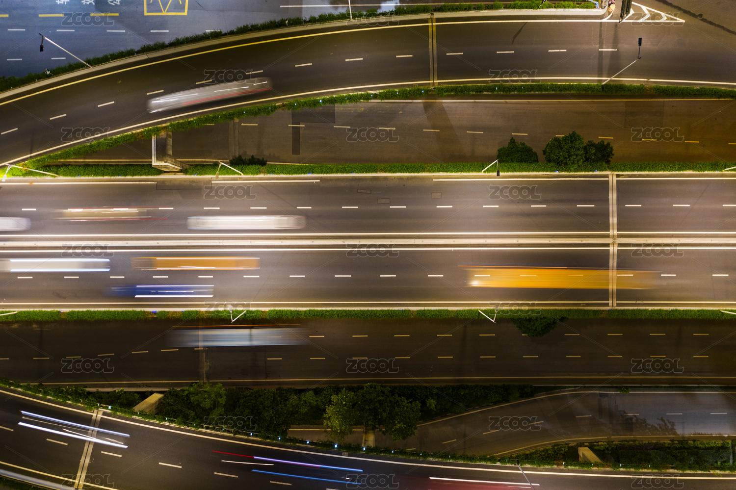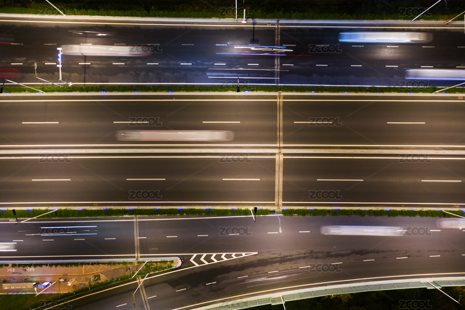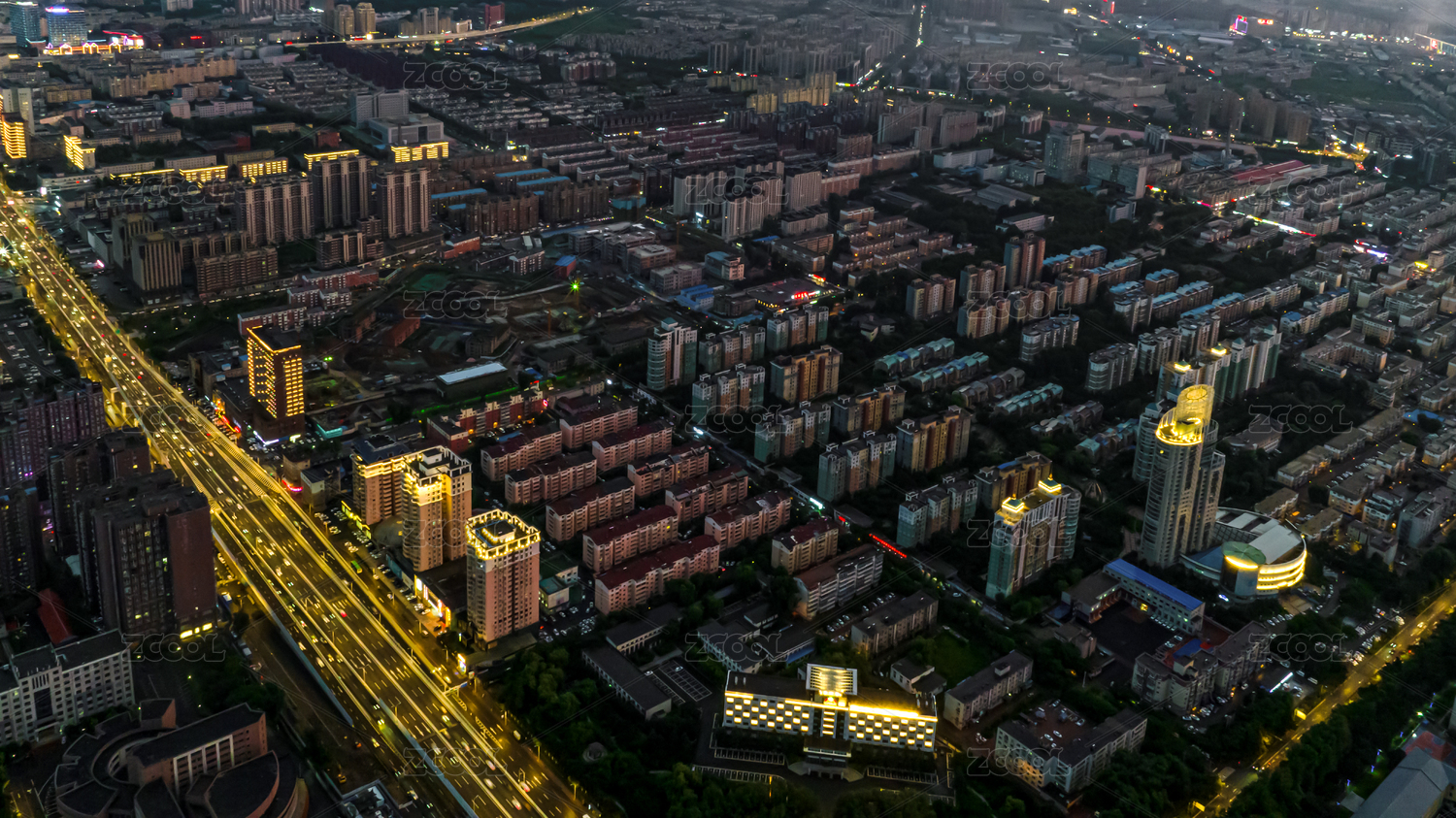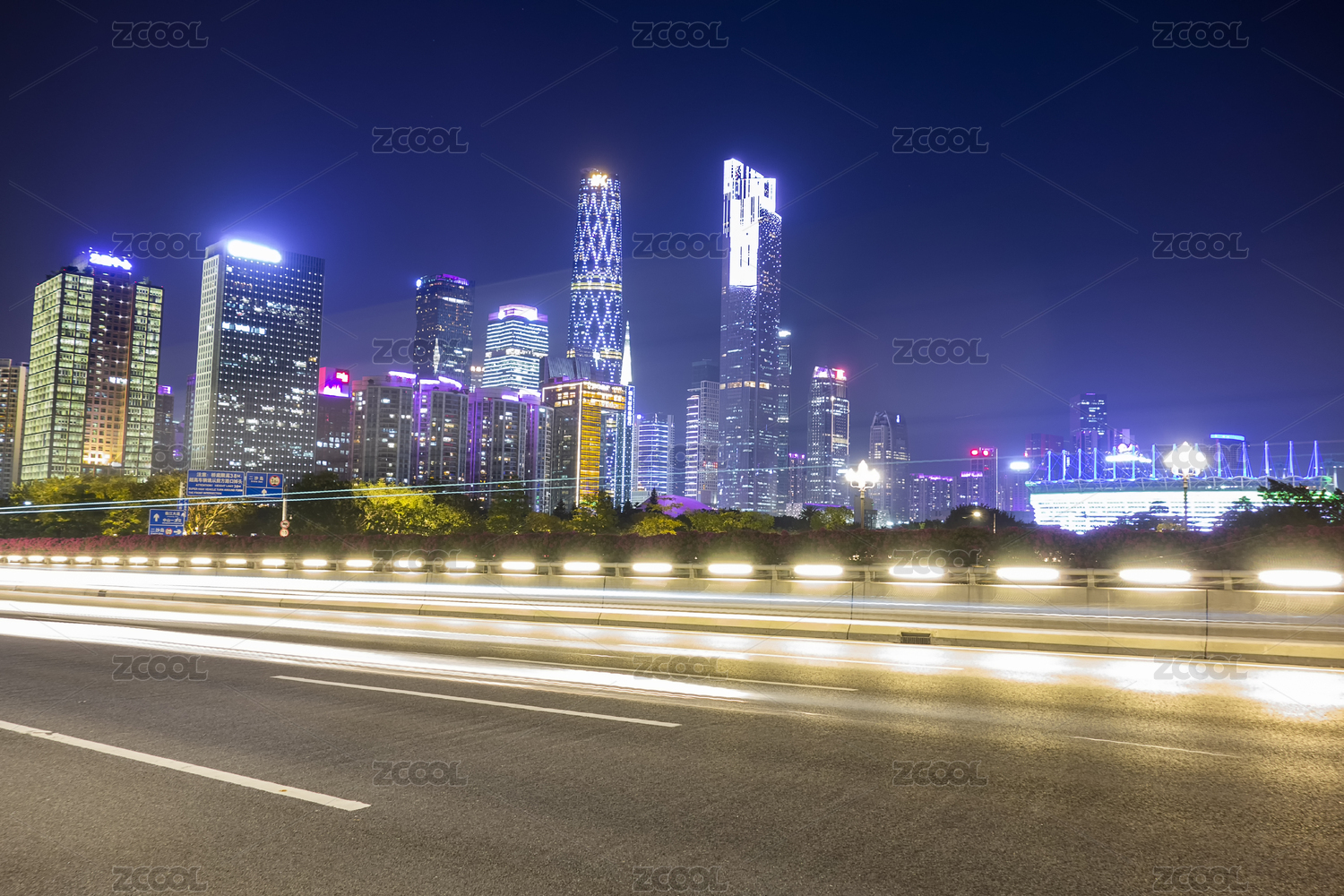 晚上燈火通明的CBD和旁邊經(jīng)過(guò)的公路