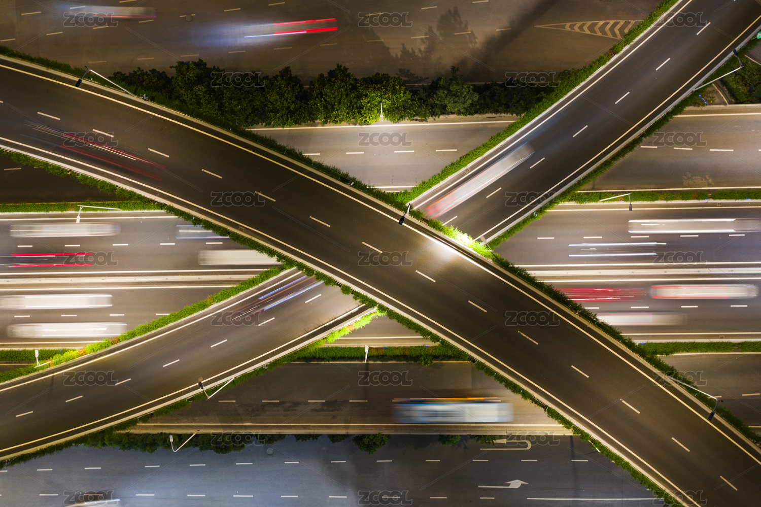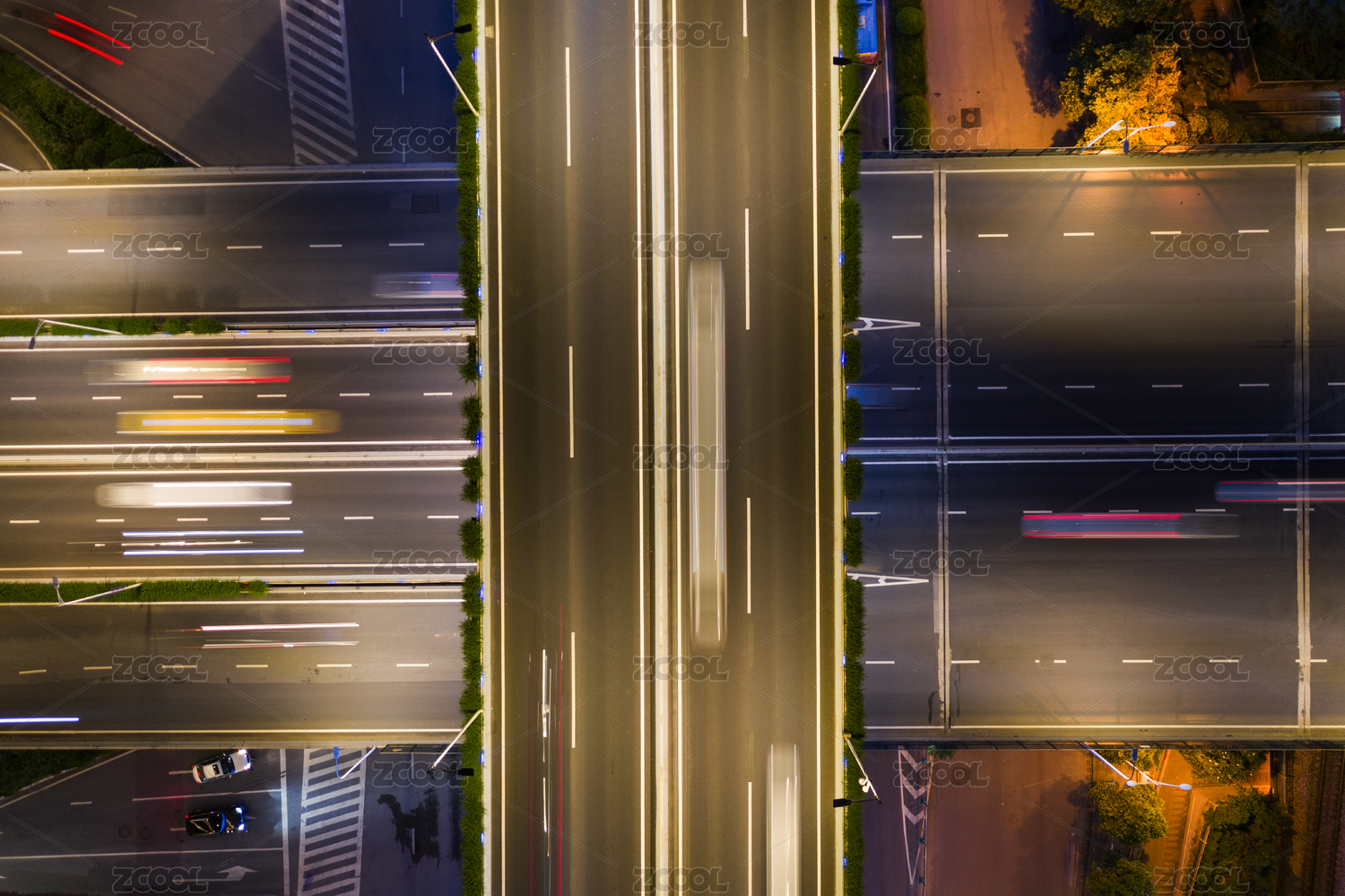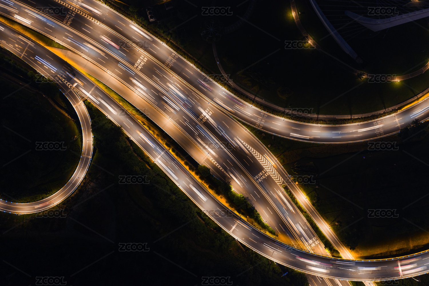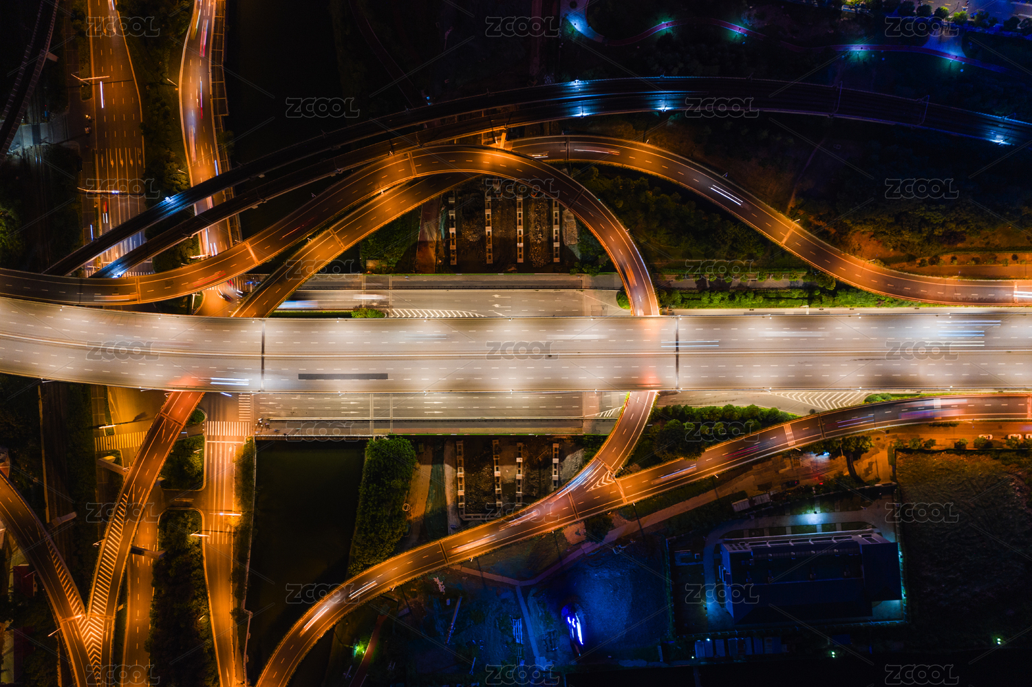晚上燈火通明的CBD和旁邊經(jīng)過(guò)的公路