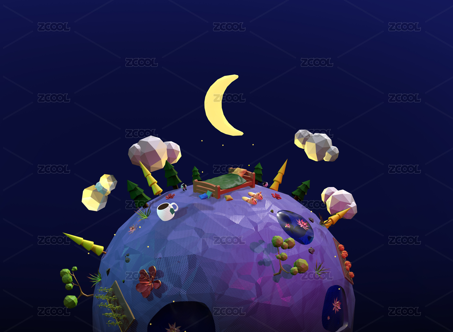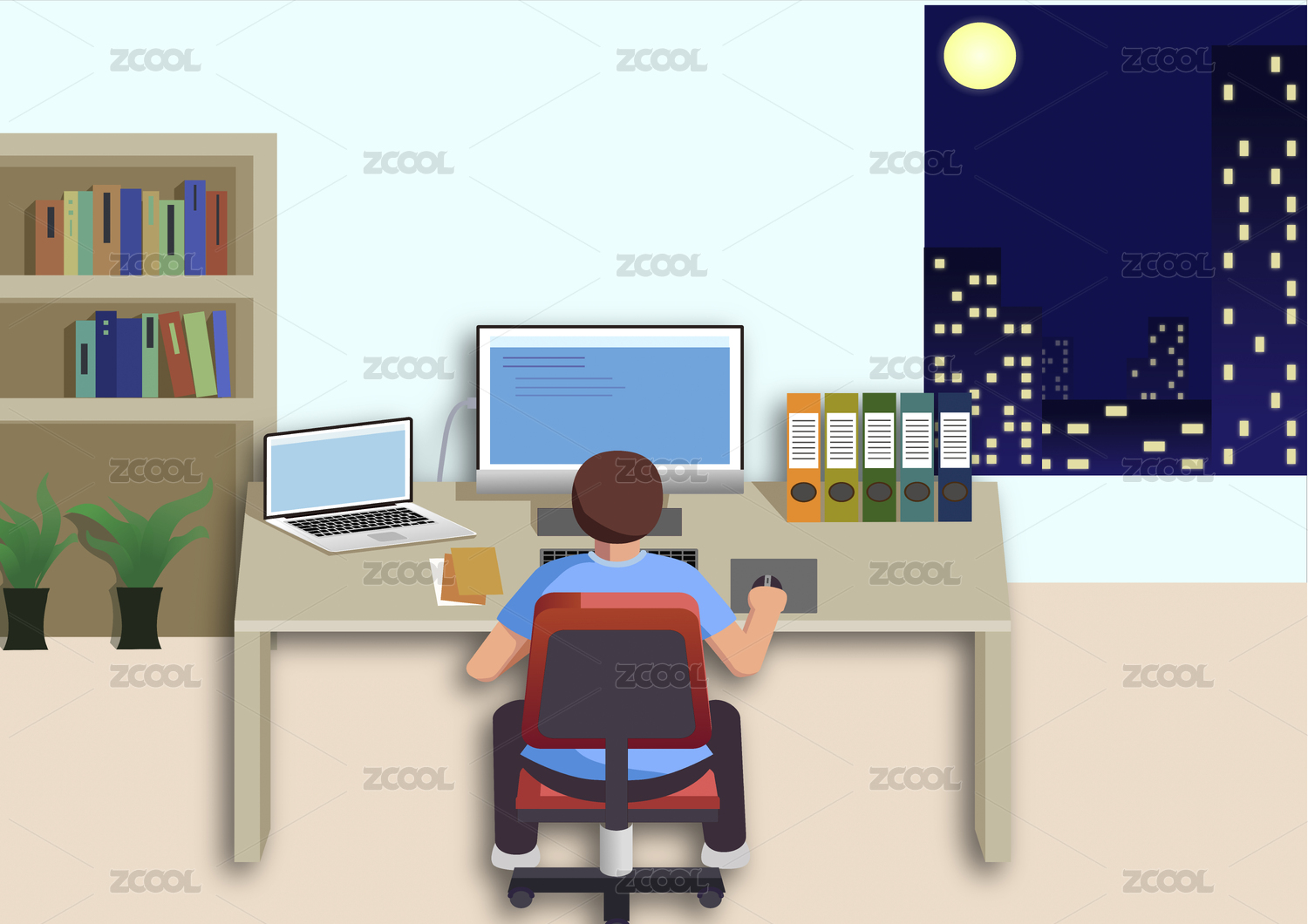 扁平風(fēng)室內(nèi)插畫-夜晚