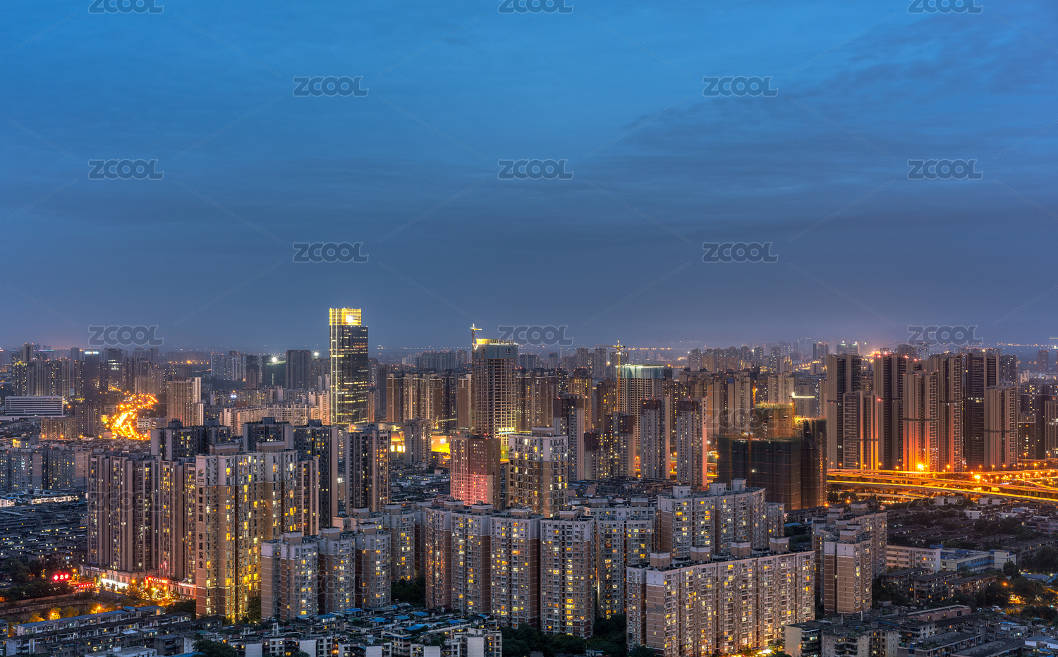 中國(guó)四川成都中心城區(qū)現(xiàn)代建筑夜景天際線