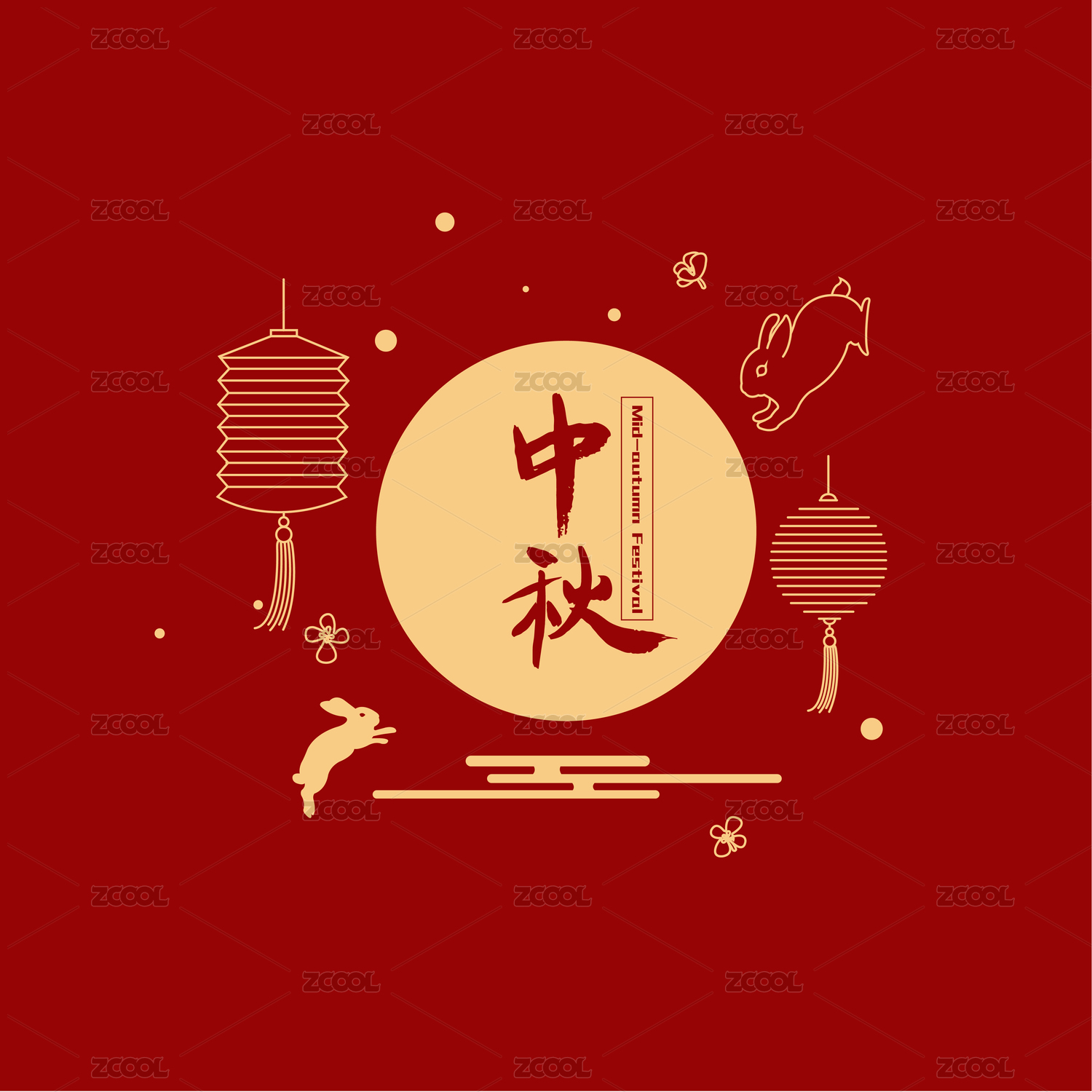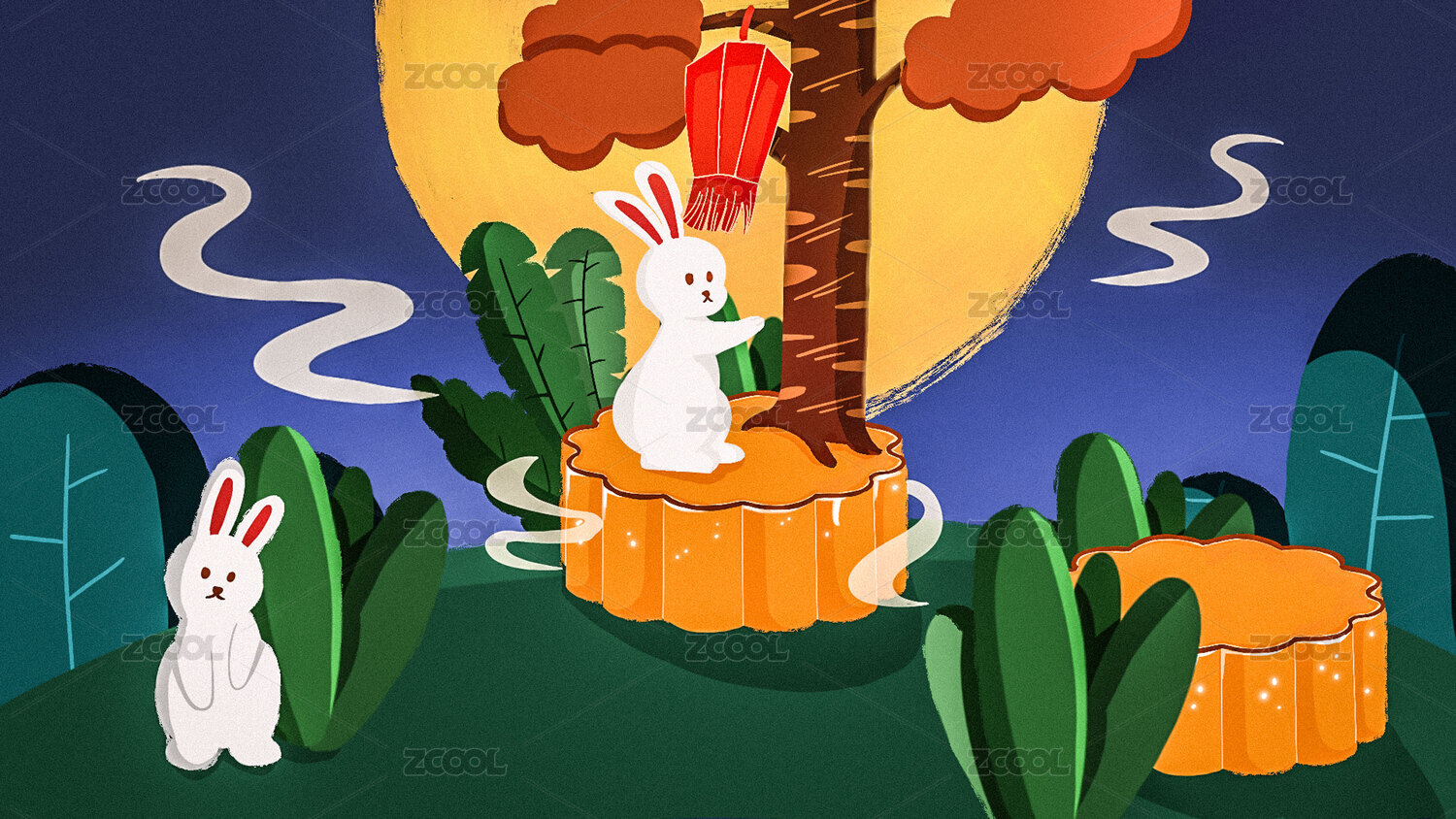中秋節(jié)兔子和月亮燈籠中國(guó)風(fēng)插畫(huà)