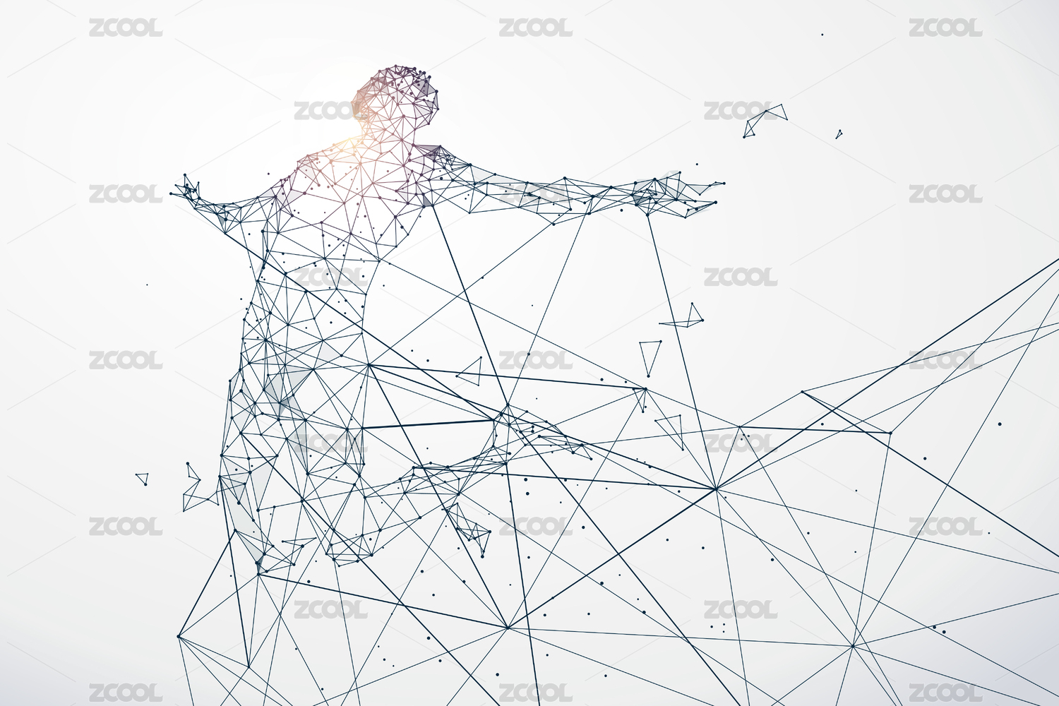 點線面繪制的人、力圖、大腦思維矢量圖廣告海報。