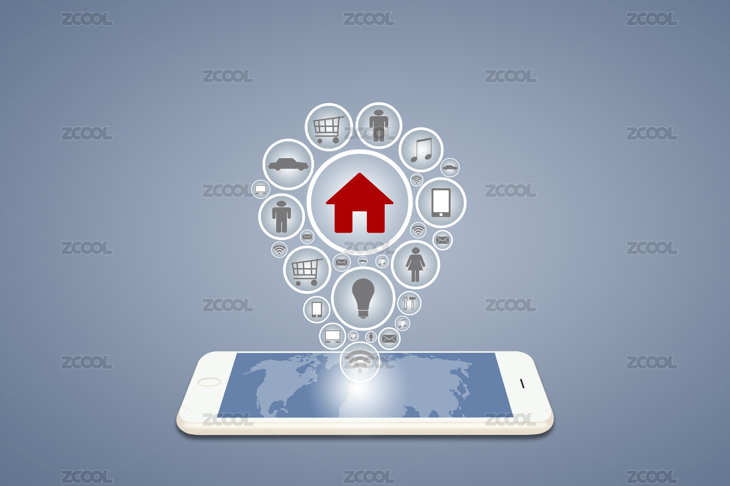 PS繪制3D智能手機、應用程序——郵件、購物、創(chuàng)意、云計算、WiFi、大數(shù)據(jù)、社交、音樂等圖標