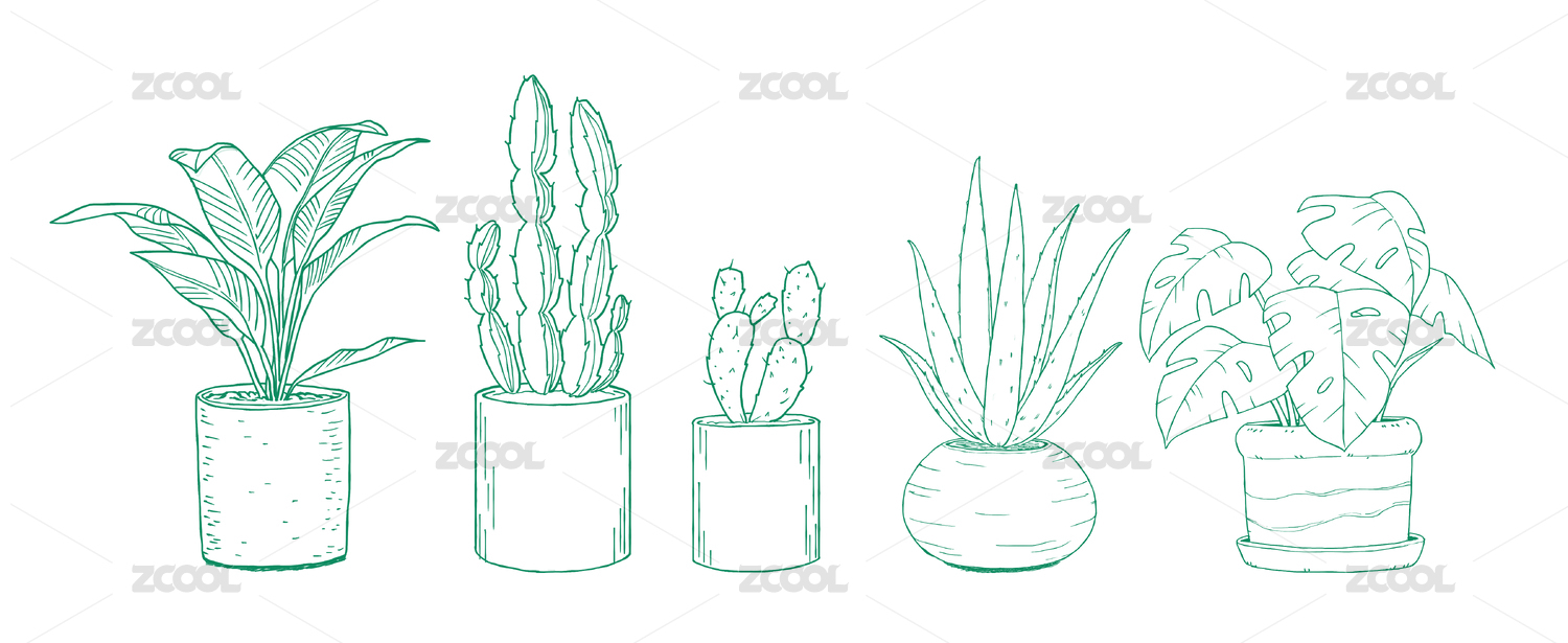 線條繪制的室內(nèi)植物圖案 矢量圖插畫