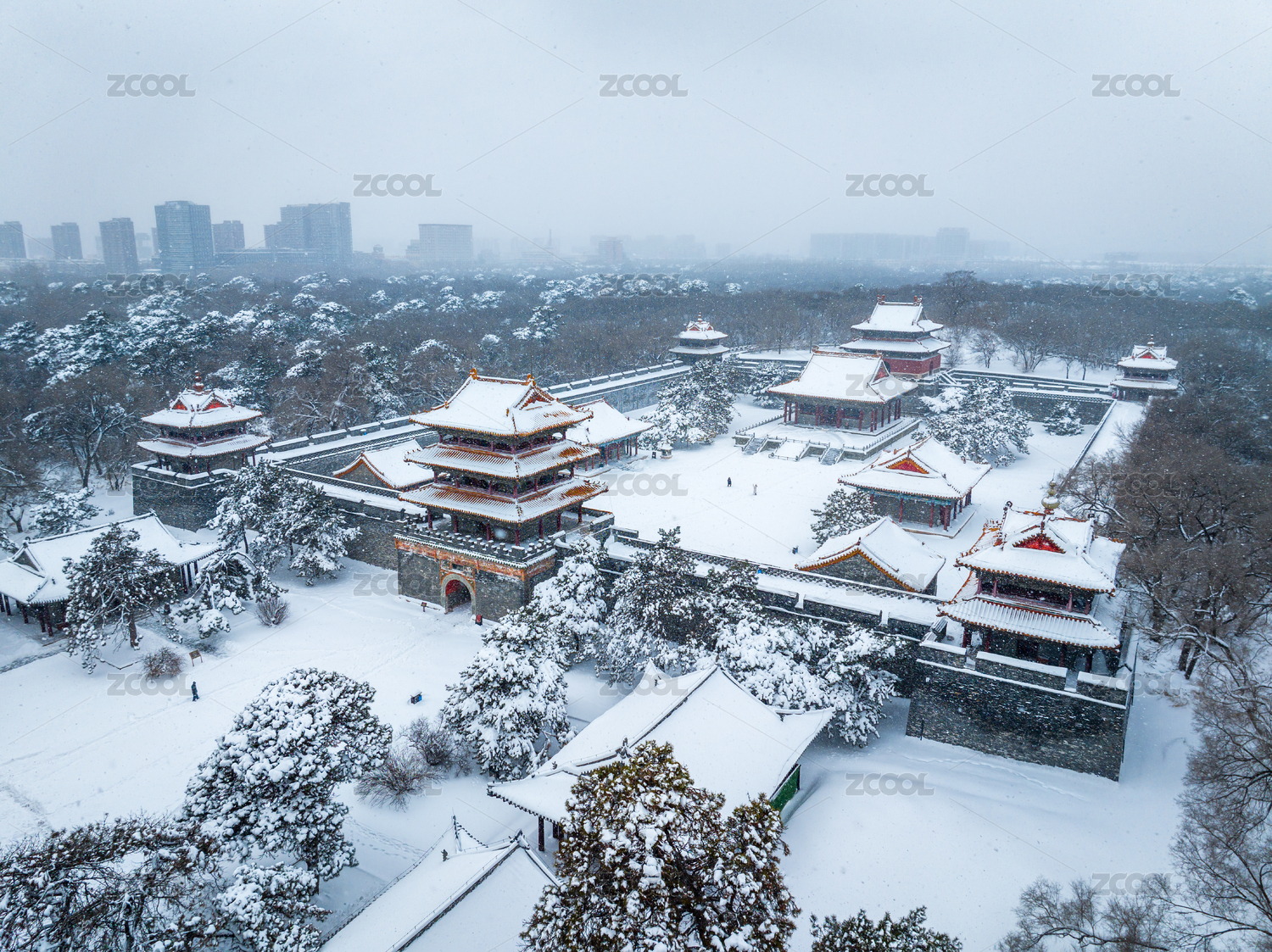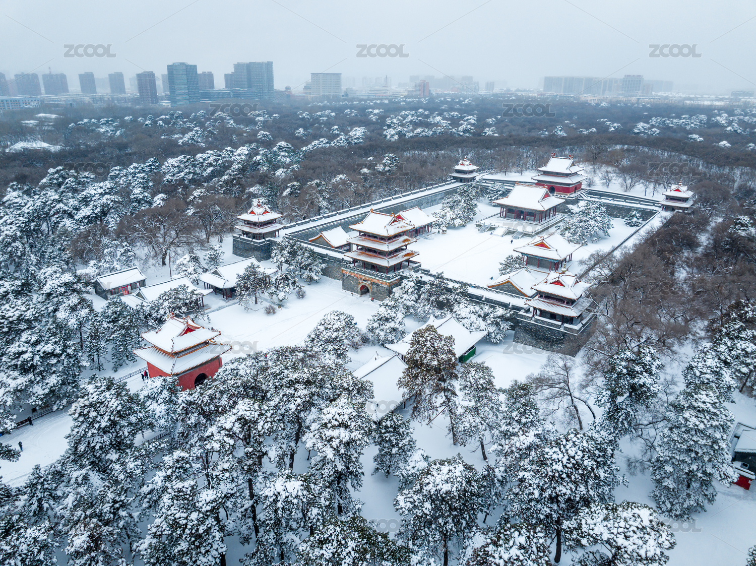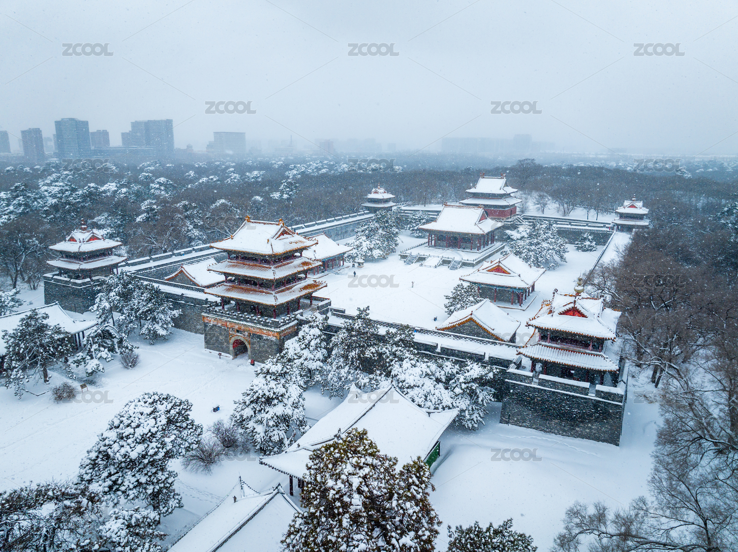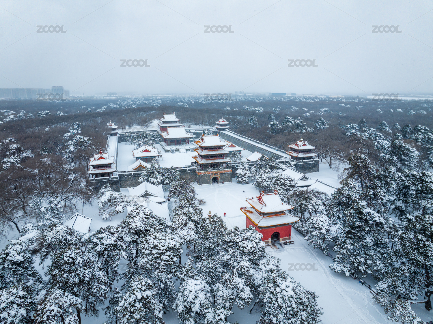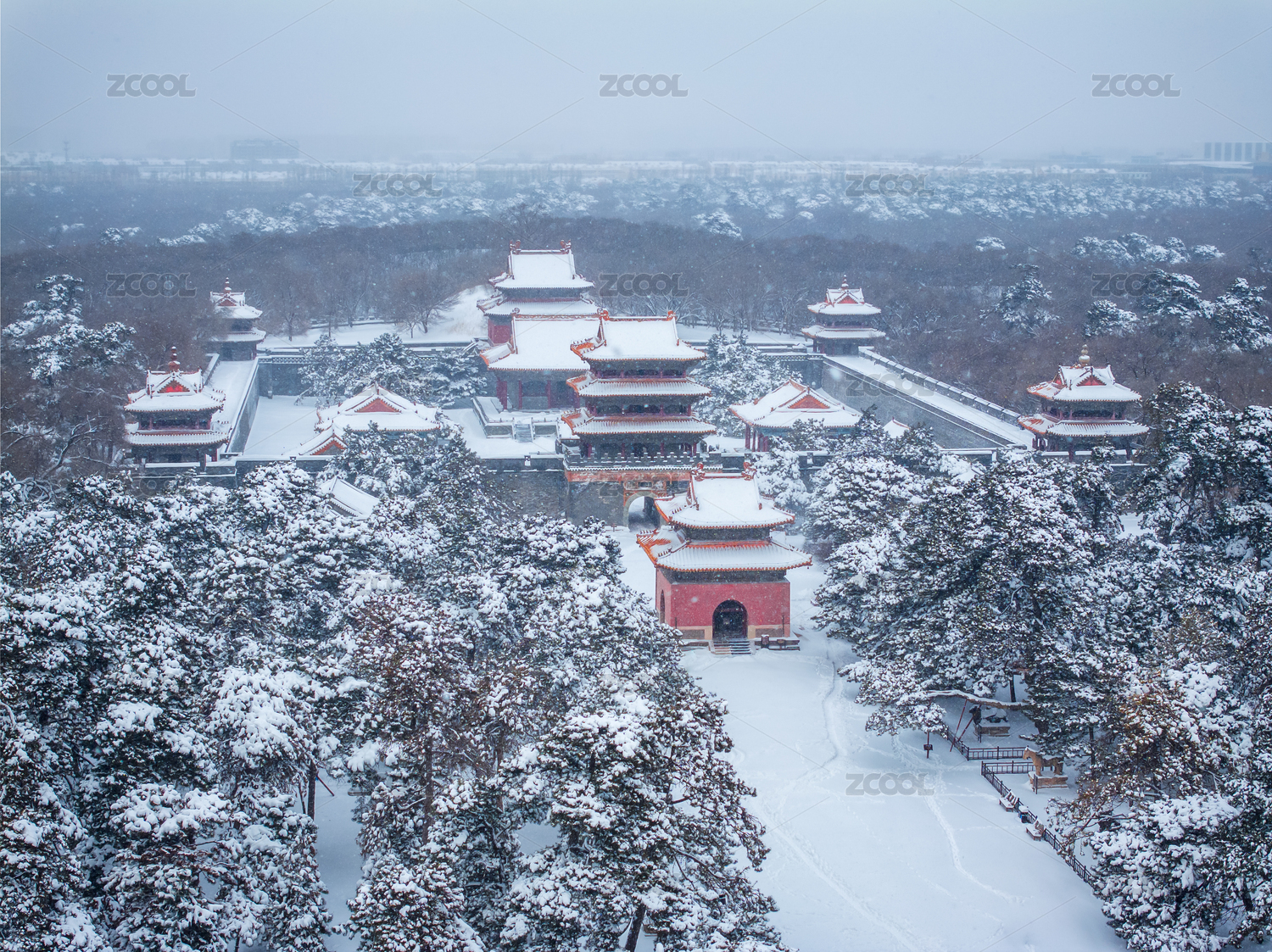 遼寧沈陽北陵公園清昭陵大雪中古建筑航拍