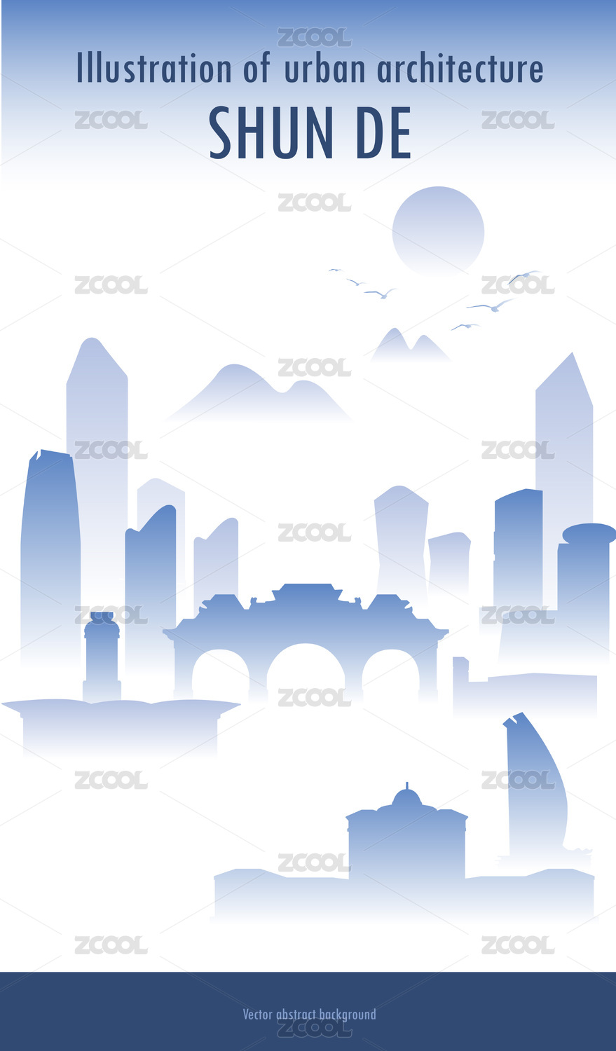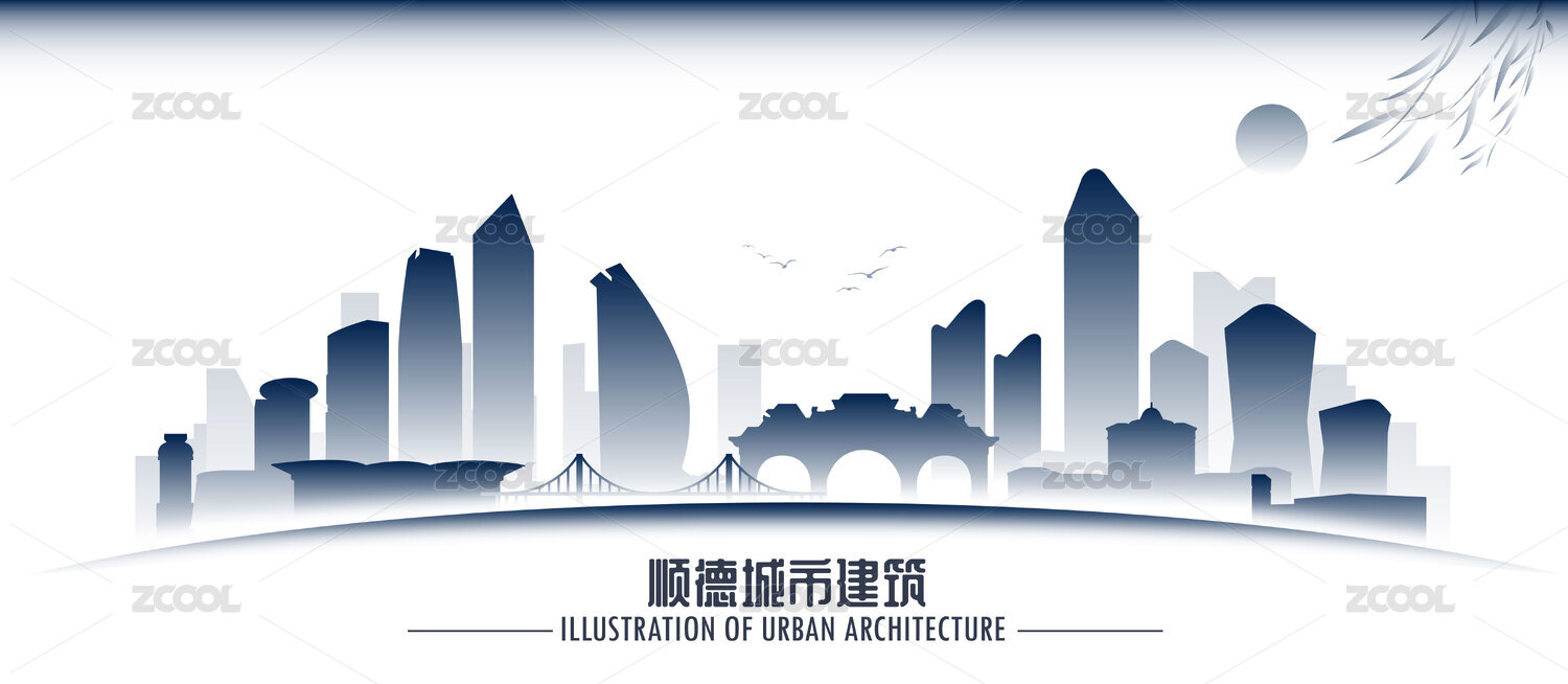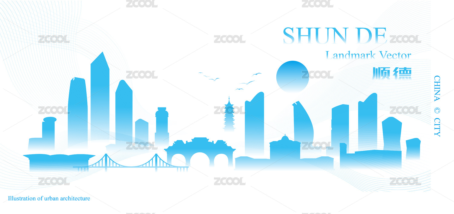 多彩順德城市地標(biāo)建筑矢量插畫(huà)