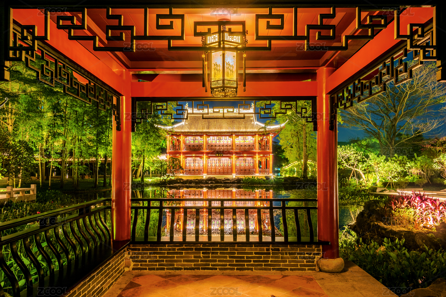 中國(guó)廣東佛山順德順?lè)迳焦珗@汀芷園夜景