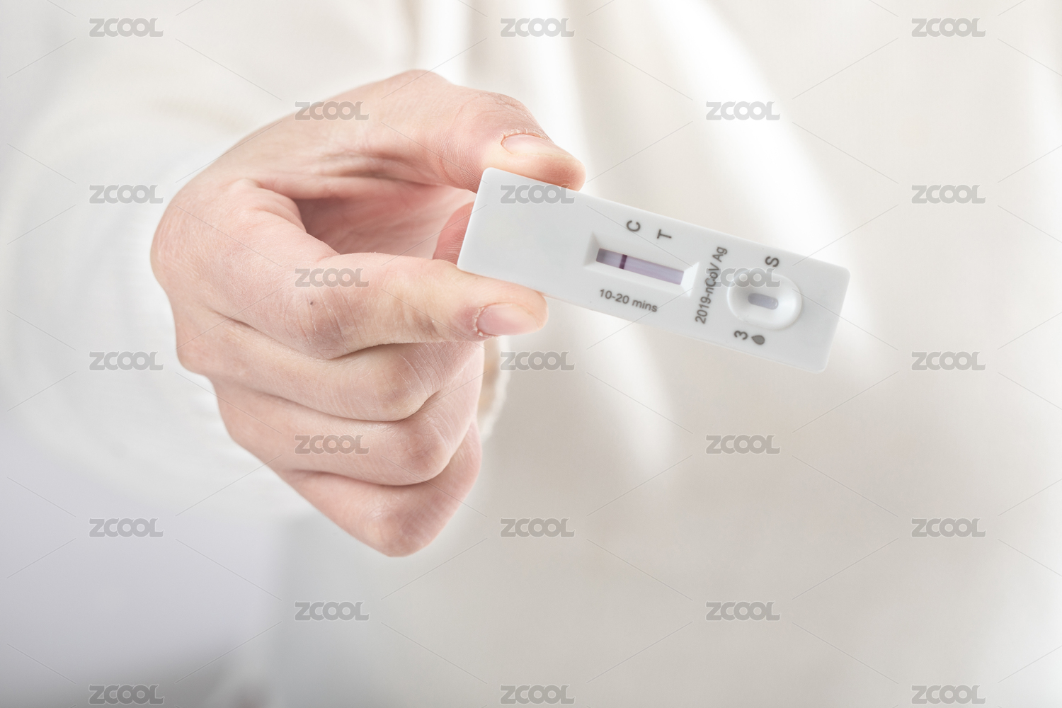 手拿著檢測結(jié)果顯示陰性的新冠自檢試紙
