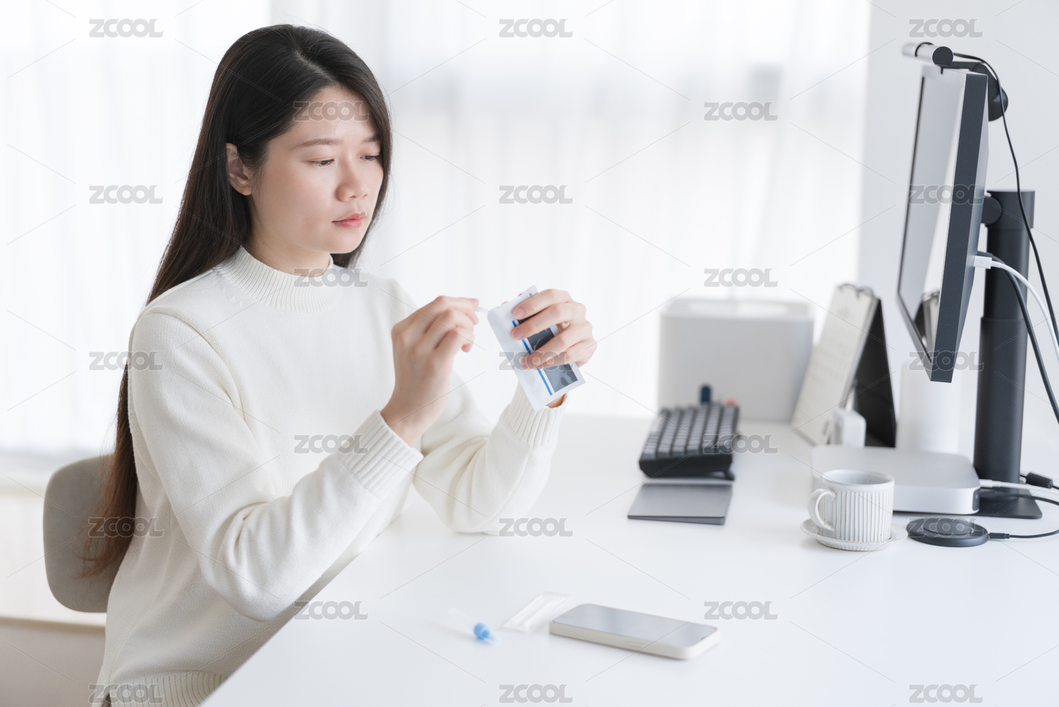 拆開測試盒的女人準(zhǔn)備做抗原自檢