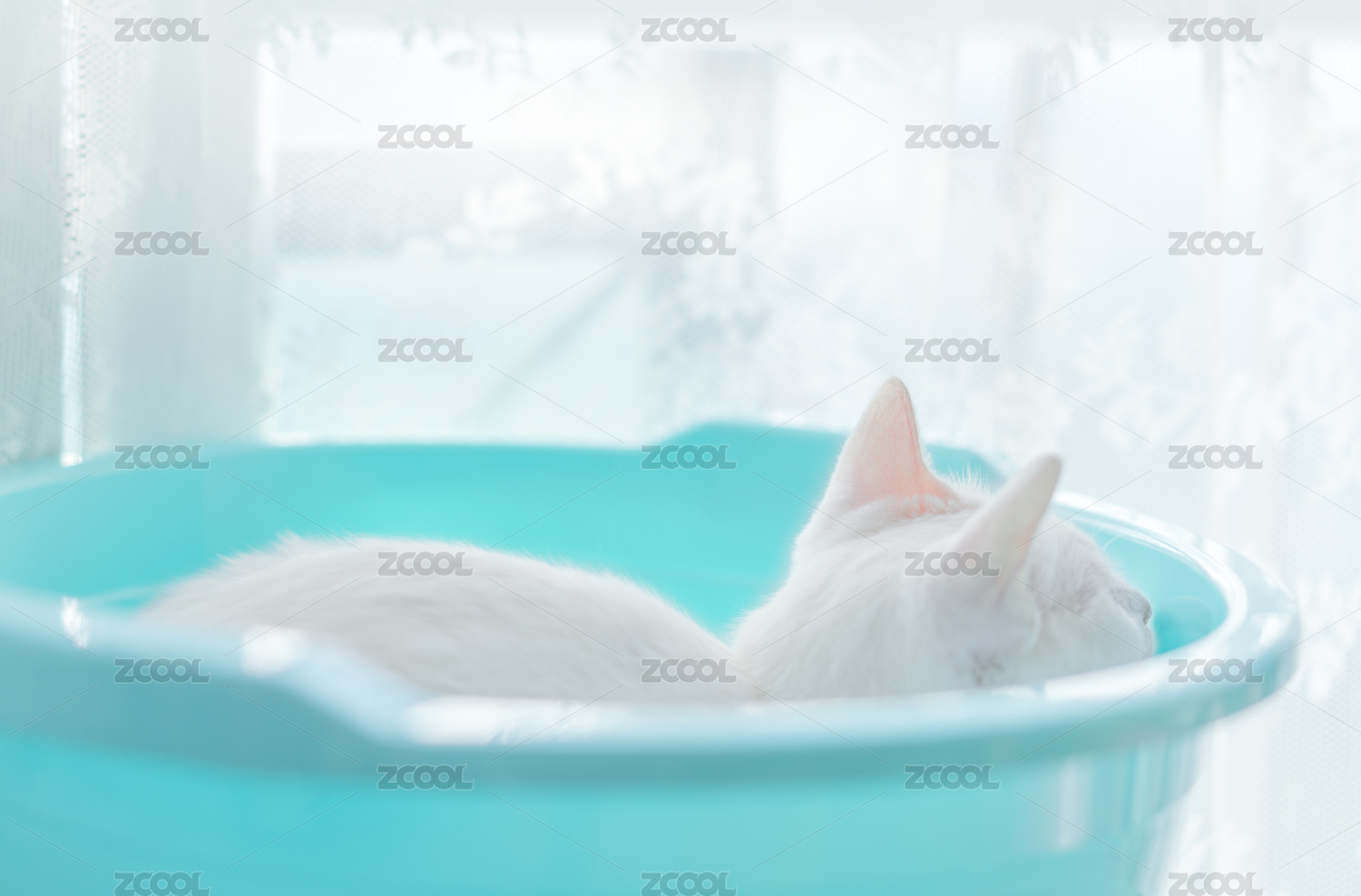 白色的貓?zhí)膳P在盆子里