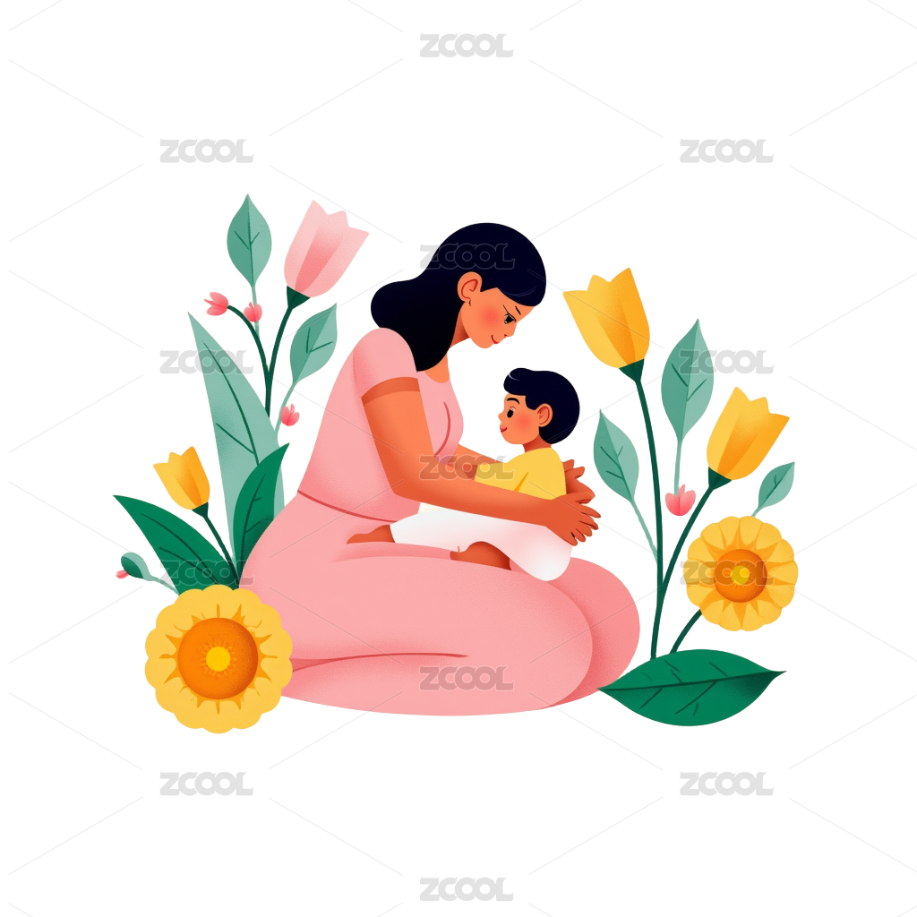 母親節(jié)慈愛的媽媽擁抱女兒Png免摳素材扁平漸變風(fēng)格