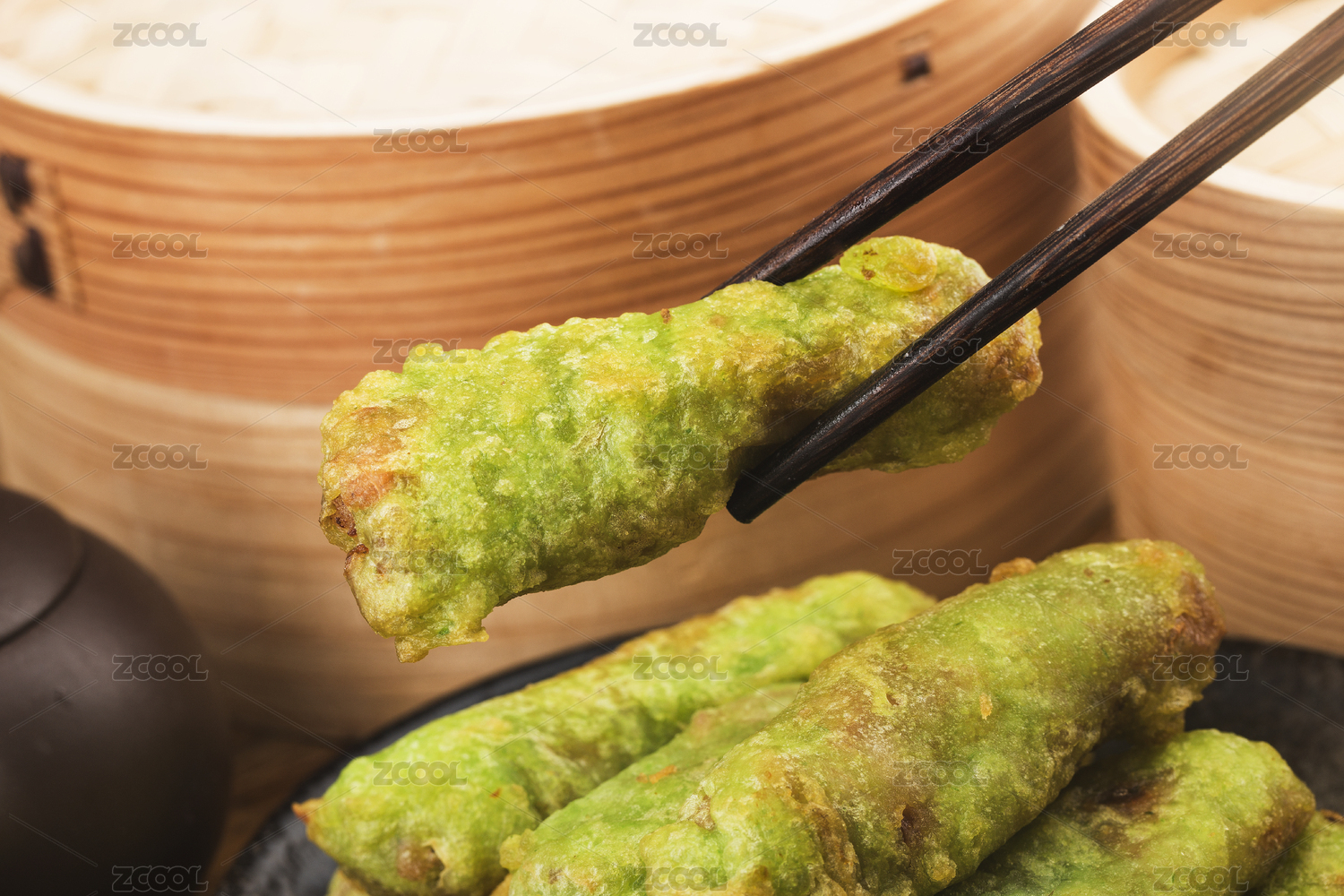 四川成都洛帶古鎮(zhèn)油炸小吃 艾蒿饃饃
