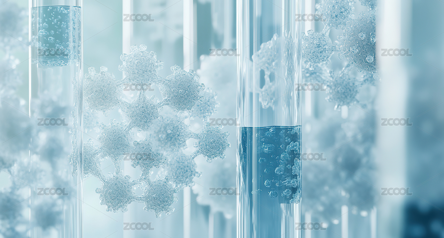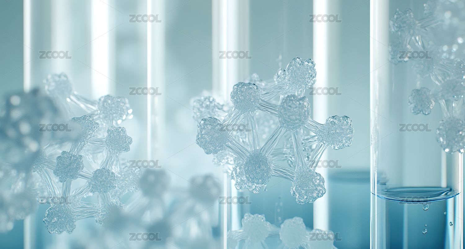 分子結(jié)構(gòu)與透明材料背景3D渲染