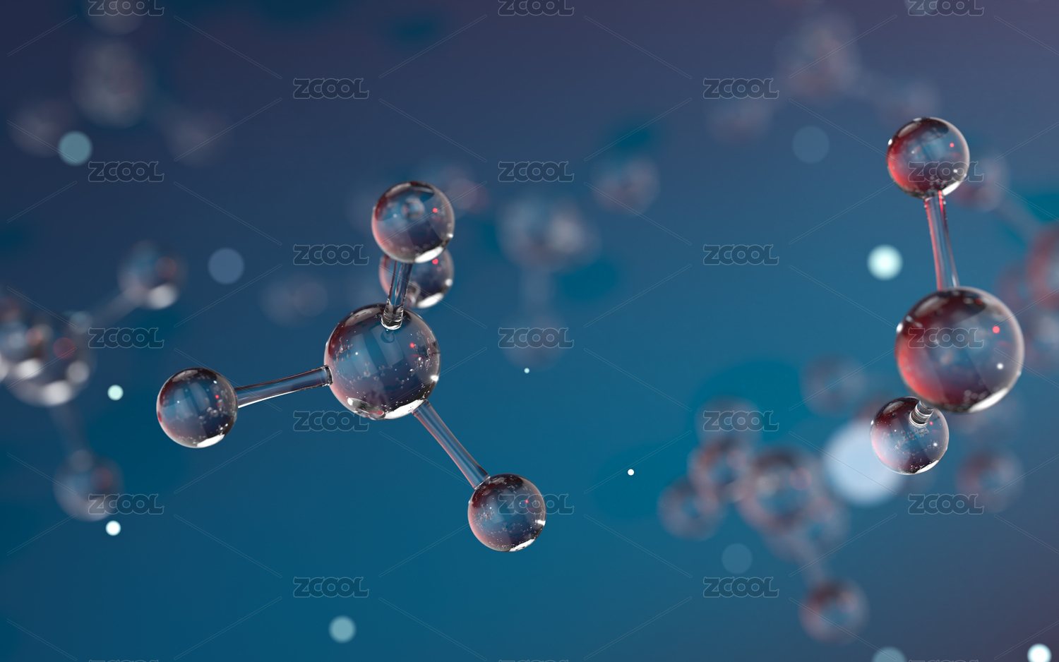 分子結(jié)構(gòu)與玻璃球3D渲染