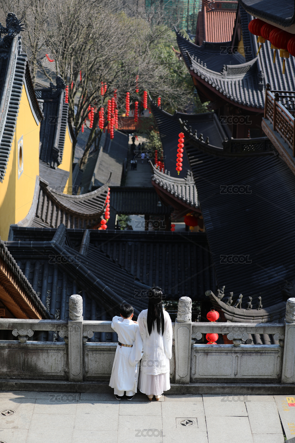 中國杭州上天竺法喜寺穿漢服的母子肖像