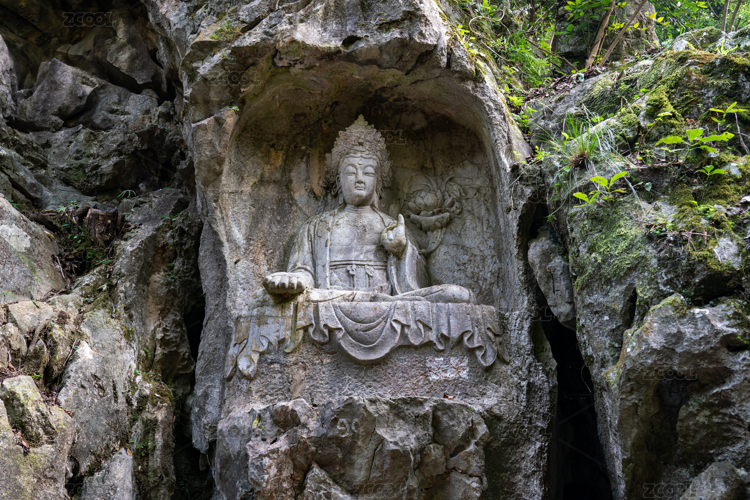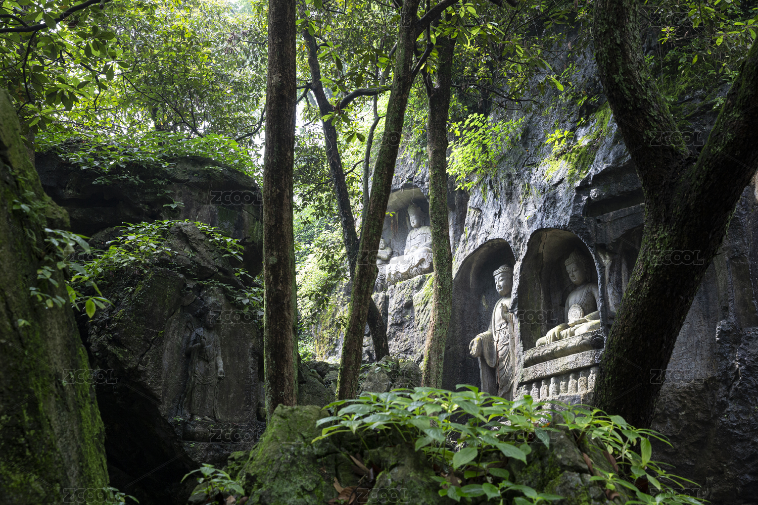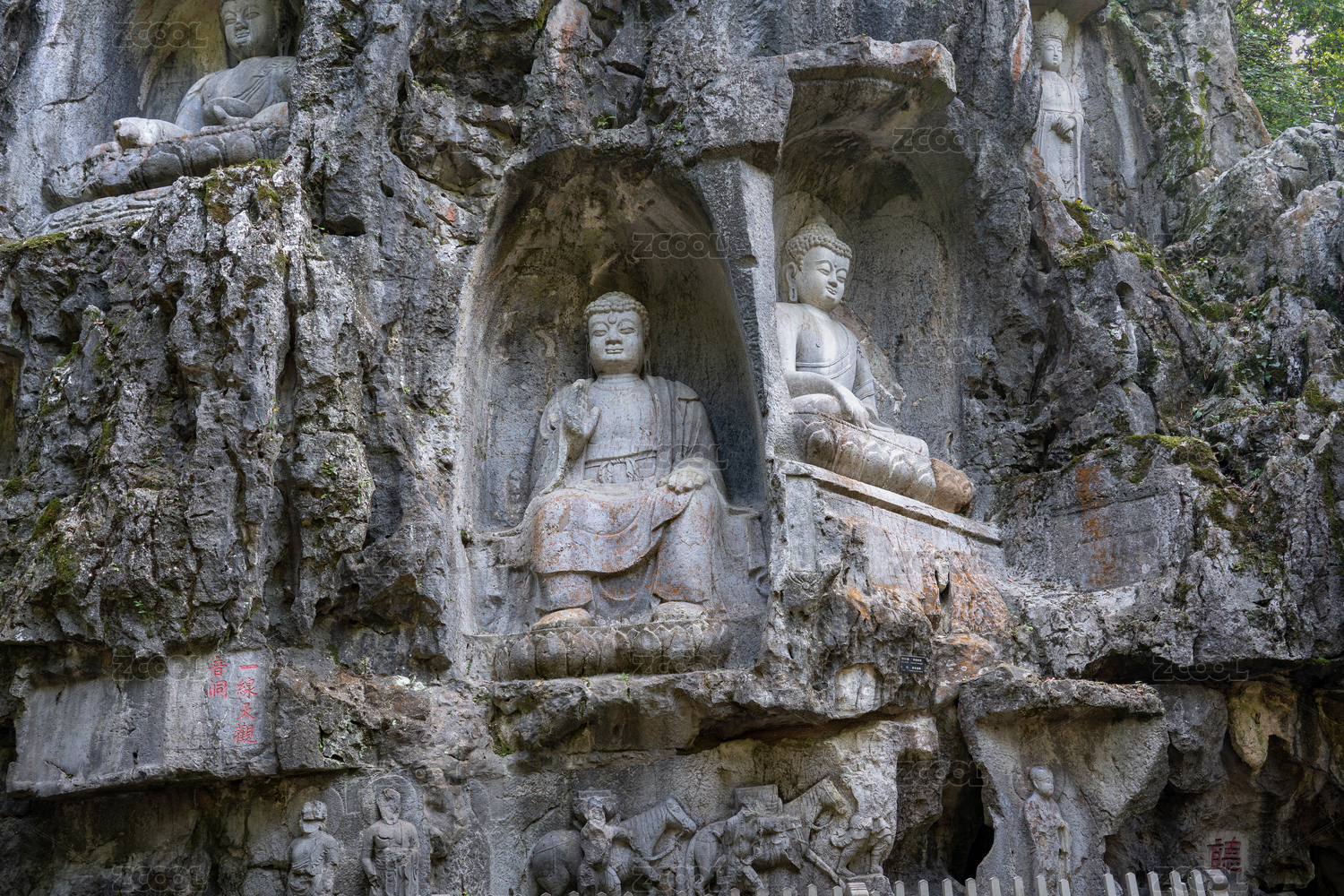 中國(guó)浙江省杭州靈隱寺飛來(lái)峰風(fēng)光