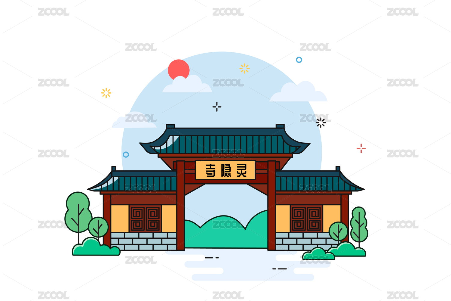 杭州靈隱寺線(xiàn)條風(fēng)插畫(huà)