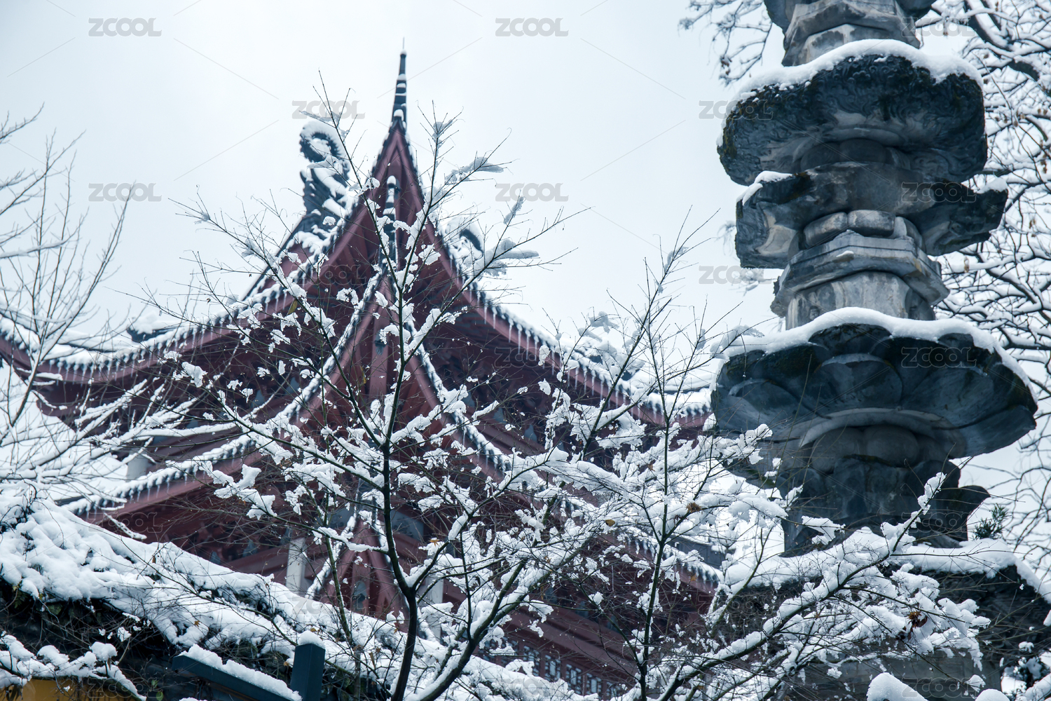 中國(guó)浙江省杭州市靈隱寺的雪景